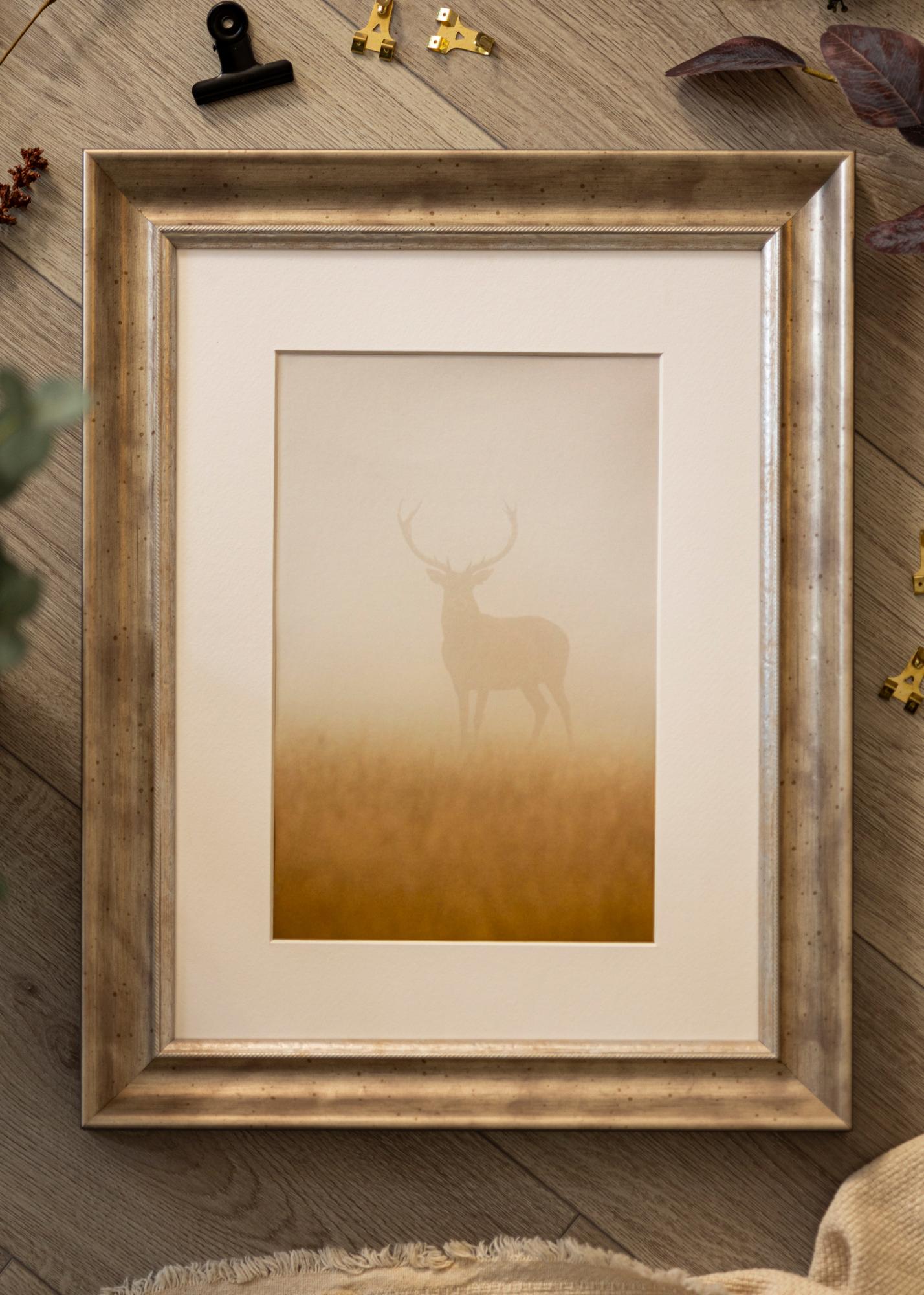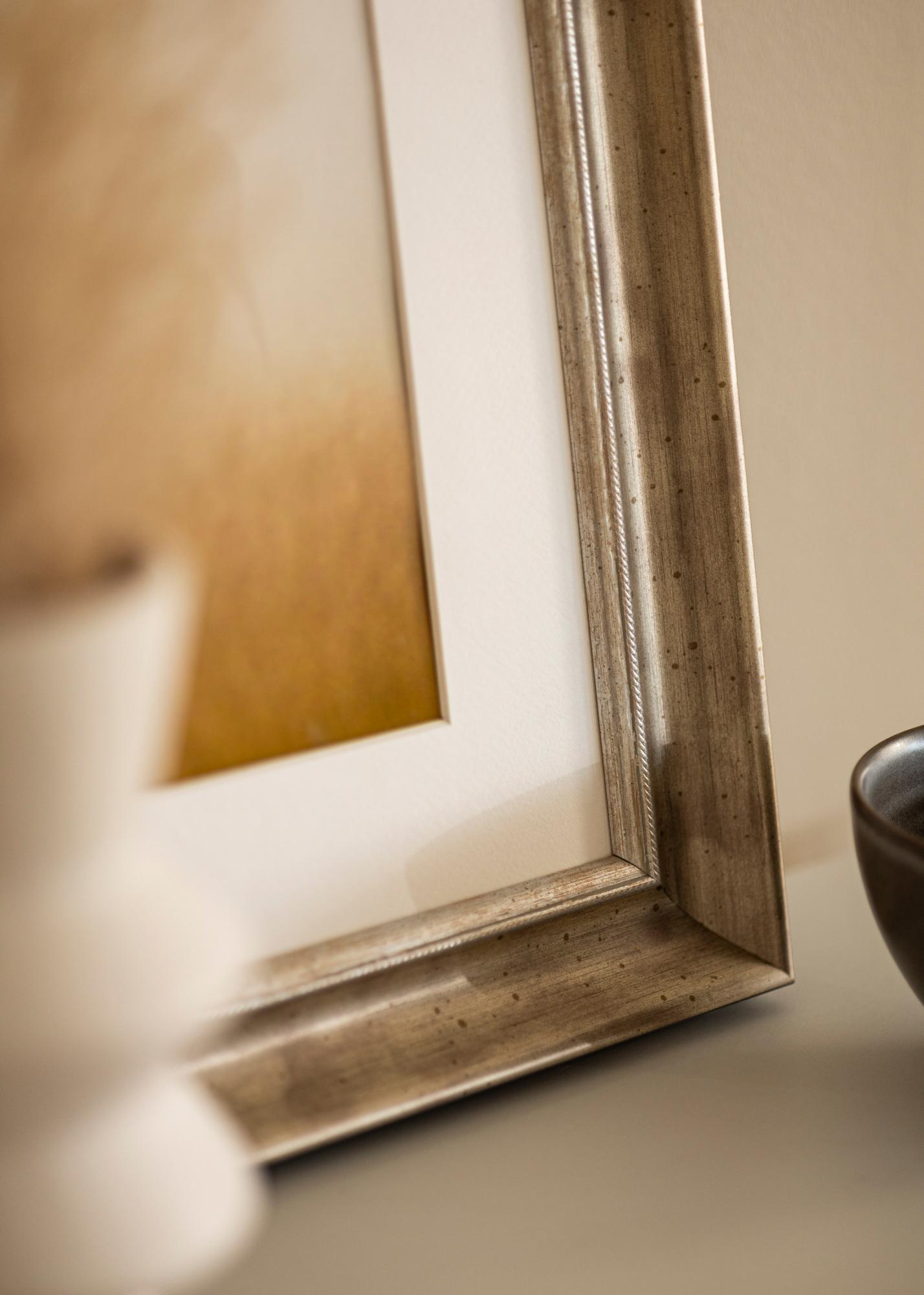 Luksusowa ramka na obrazy w dowolnym rozmiarze z klasycznym srebrnym profilem. Szeroka srebrna ramka pasuje do niemal wszystkich rodzajów motywów i otoczeń.