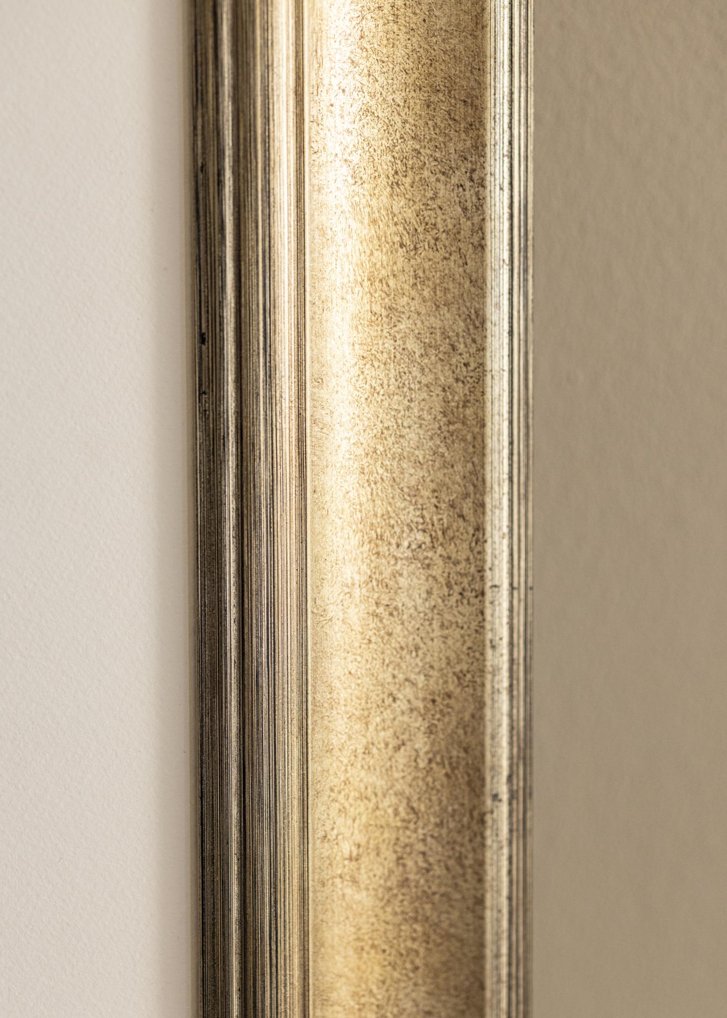 Cienkie, liniowe dekoracje wzdłuż krawędzi przyczyniają się do eleganckiego wyglądu ramy, podczas gdy szczotkowana powierzchnia z subtelnymi zmianami kolorów podkreśla jej głębię i strukturę. Ciemny ton srebra tworzy klasyczne i ponadczasowe wrażenie, które pasuje do większości stylów wnętrz.