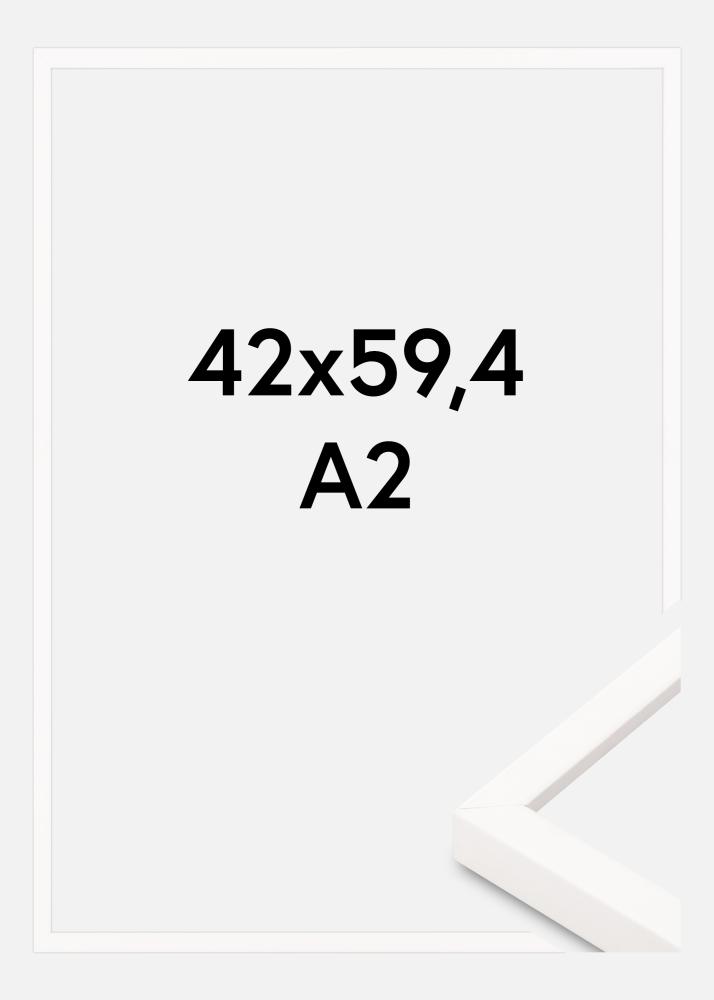 Ta elegancka ramka na zdjęcia w białym kolorze jest idealna do wyeksponowania twoich ulubionych motywów. Z rozmiarem 42x59,4 cm doskonale nadaje się dla formatu A2, co czyni ją idealną dla większych zdjęć lub plakatów. Elegancki i minimalistyczny design z cienkim, gładkim profilem tworzy stylowe wrażenie, które wtapia się w większość wnętrz.