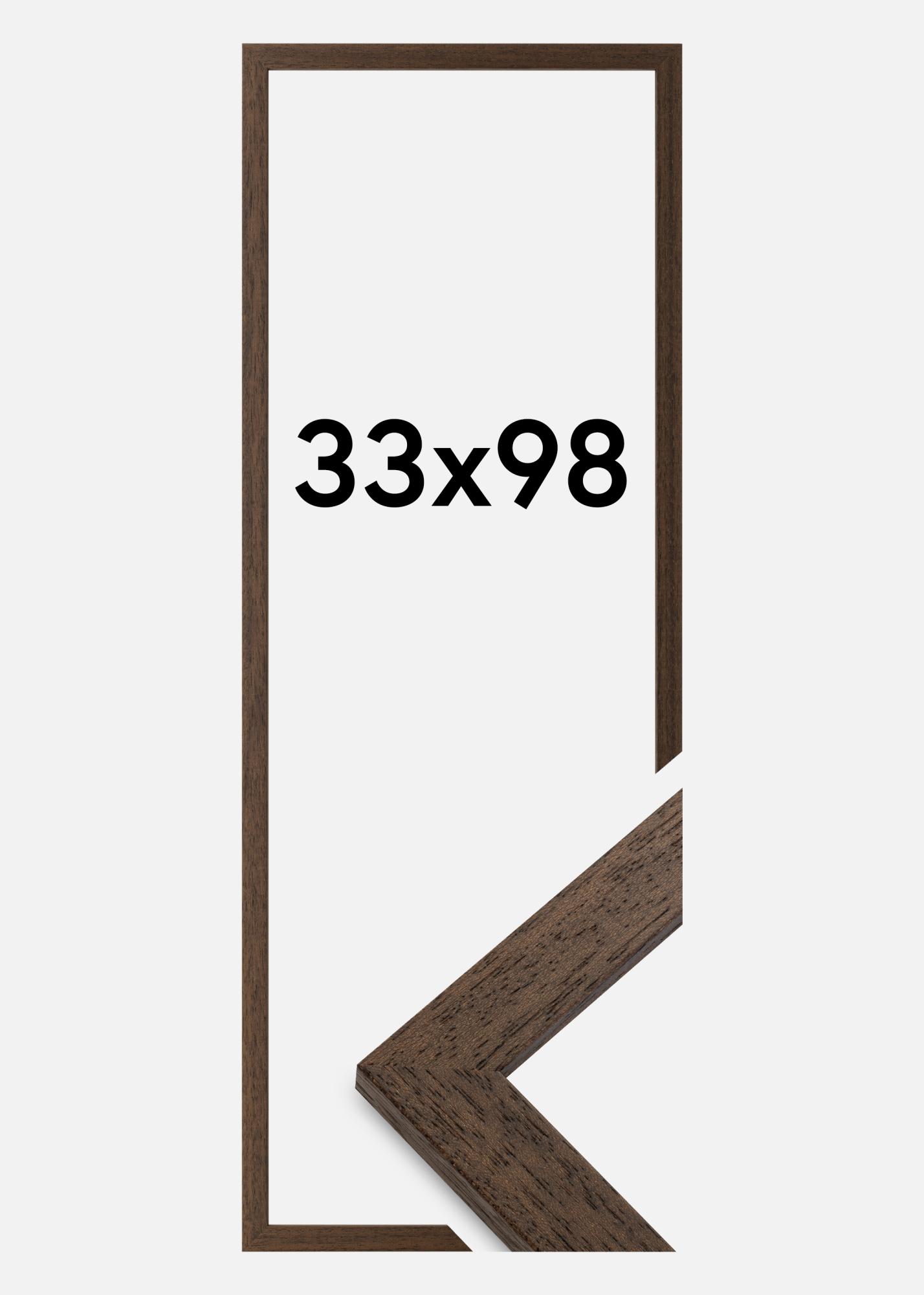 Przekształć swoje ulubione zdjęcia w dzieła sztuki dzięki tej pięknej ramce na zdjęcia o wymiarach 33x98 cm. Ta ramka na obrazki wykonana jest z wysokiej jakości drewna i ma rustykalny i naturalny design w ciemnobrązowym wykończeniu. Matowa powierzchnia i wyraźna struktura drewna nadają ciepłe i organiczne uczucie, co czyni ją idealną do stworzenia zapraszającej atmosfery w twoim domu.