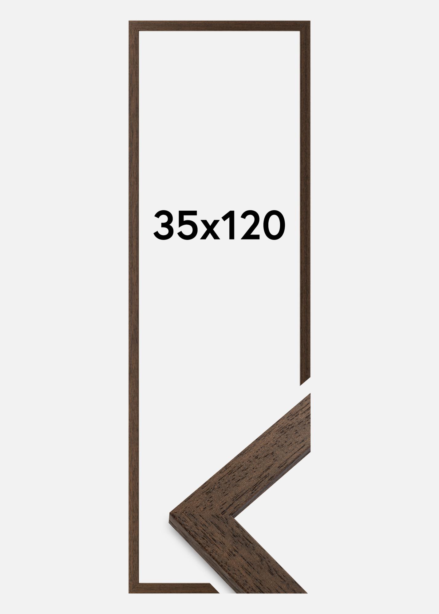 Zamień swoje ulubione zdjęcia w dzieła sztuki dzięki tej pięknej ramce na zdjęcia o wymiarach 35x120 cm. Ta rama na obrazy wykonana jest z wysokiej jakości drewna i ma rustykalny, naturalny design w ciemno brązowym wykończeniu. Matowa powierzchnia i wyraźna struktura drewna nadają ciepłe i organiczne odczucie, co sprawia, że jest idealna do tworzenia przytulnej atmosfery w twoim domu.
