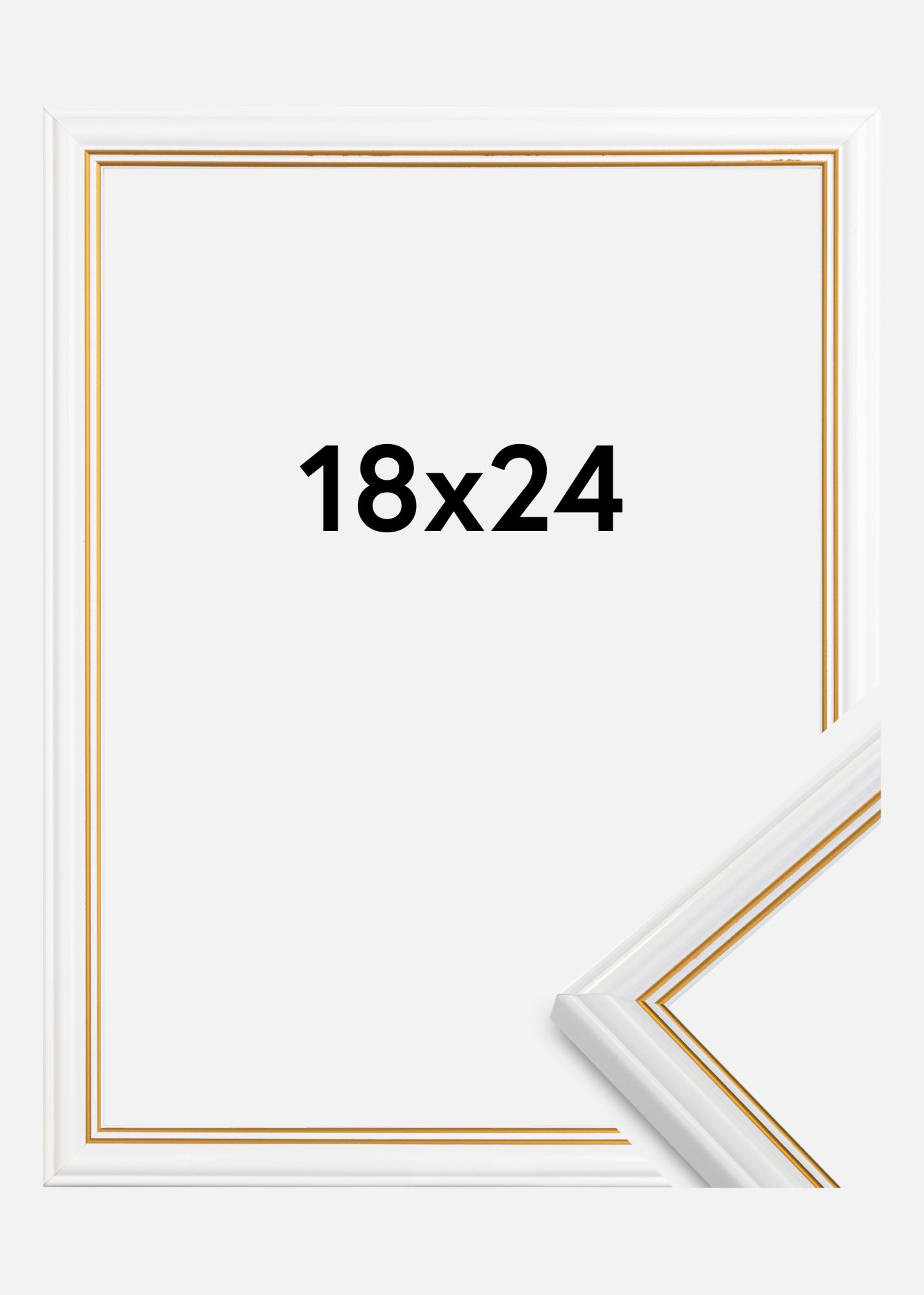 Jeśli szukasz eleganckiej i stylowej ramki na zdjęcia w dobrej cenie, "Klasyczna Biała" jest tym, czego szukasz. Ramka ma białą, zaokrągloną ramę, ozdobioną dwoma cienkimi złotymi liniami najbliżej motywu. Idealna na przykład do zdjęć portretowych lub pięknych zdjęć natury.
