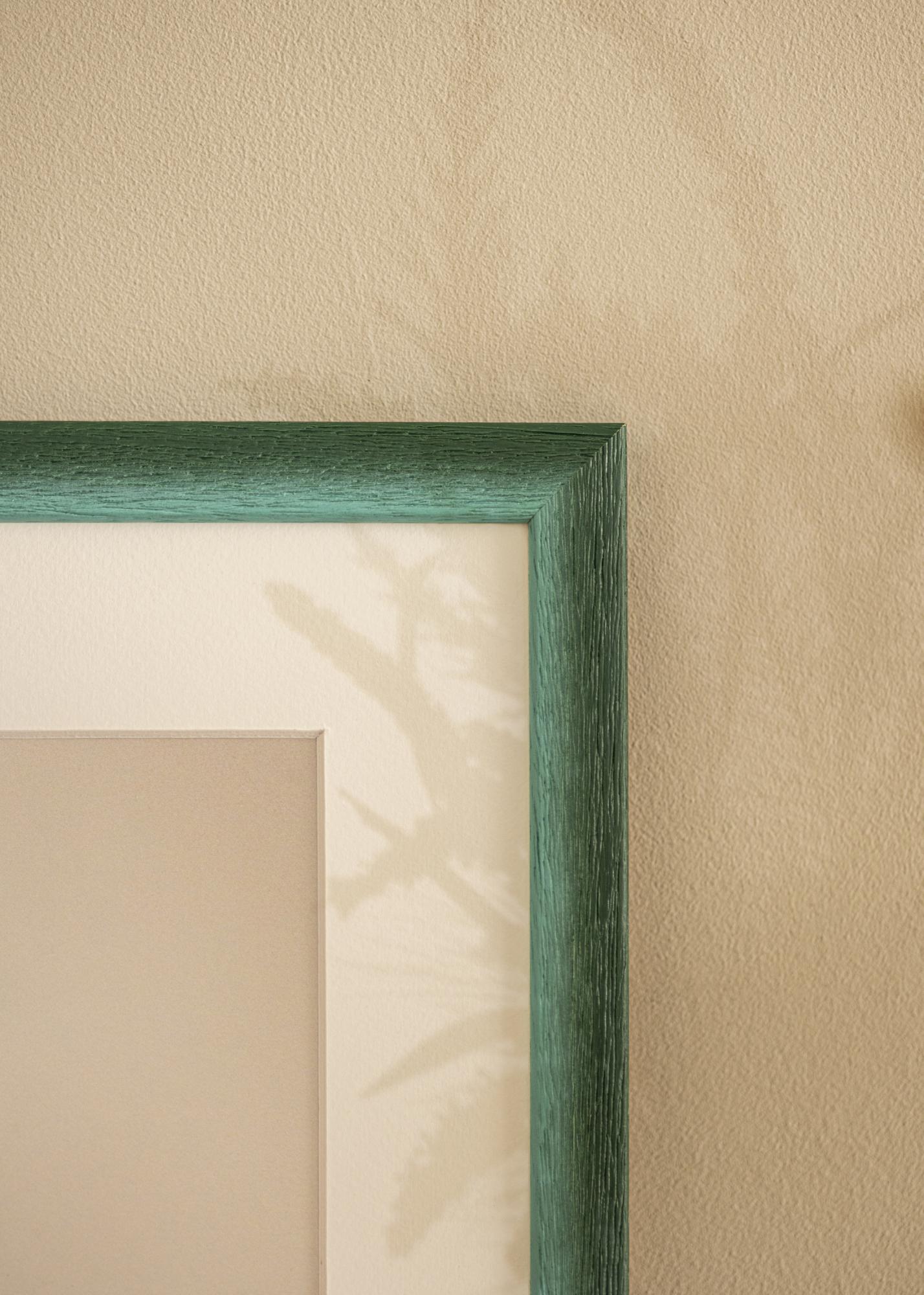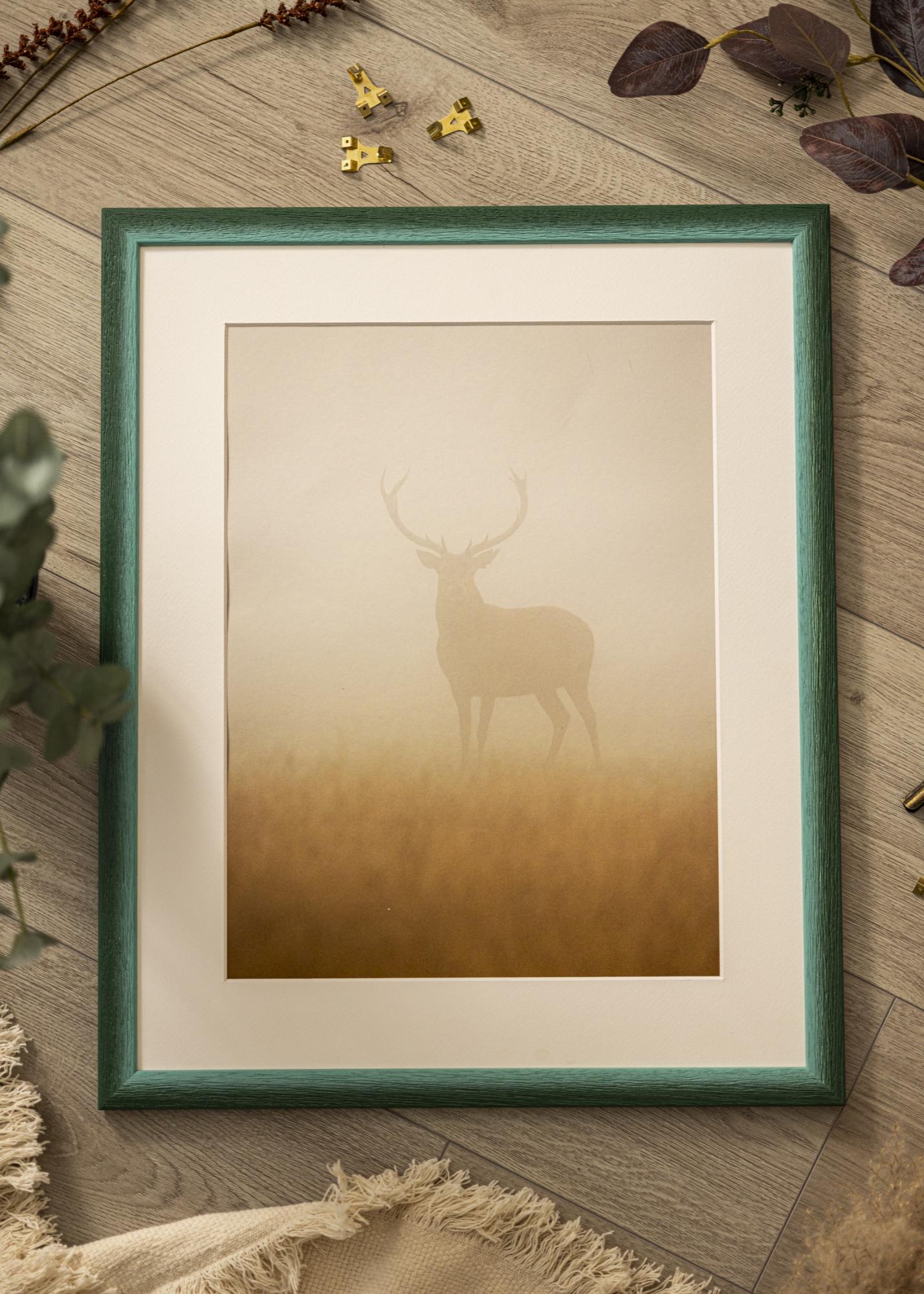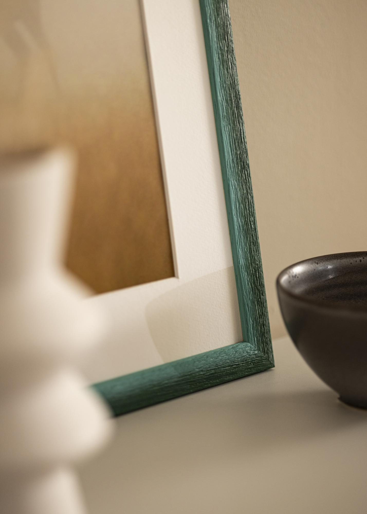 Stonowany zielony kolor ma subtelne odcienie, które nadają żywy i naturalny wygląd, podczas gdy wyeksponowana struktura drewna o głębokich słojach tworzy rustykalne wrażenie. Powierzchnia ma matowe wykończenie, które łagodzi intensywność koloru i nadaje miękkie wrażenie, dzięki czemu Twoje zdjęcia rzeczywiście mogą być w centrum uwagi. Wąski profil równoważy rustykalny wygląd z nowoczesną prostotą.