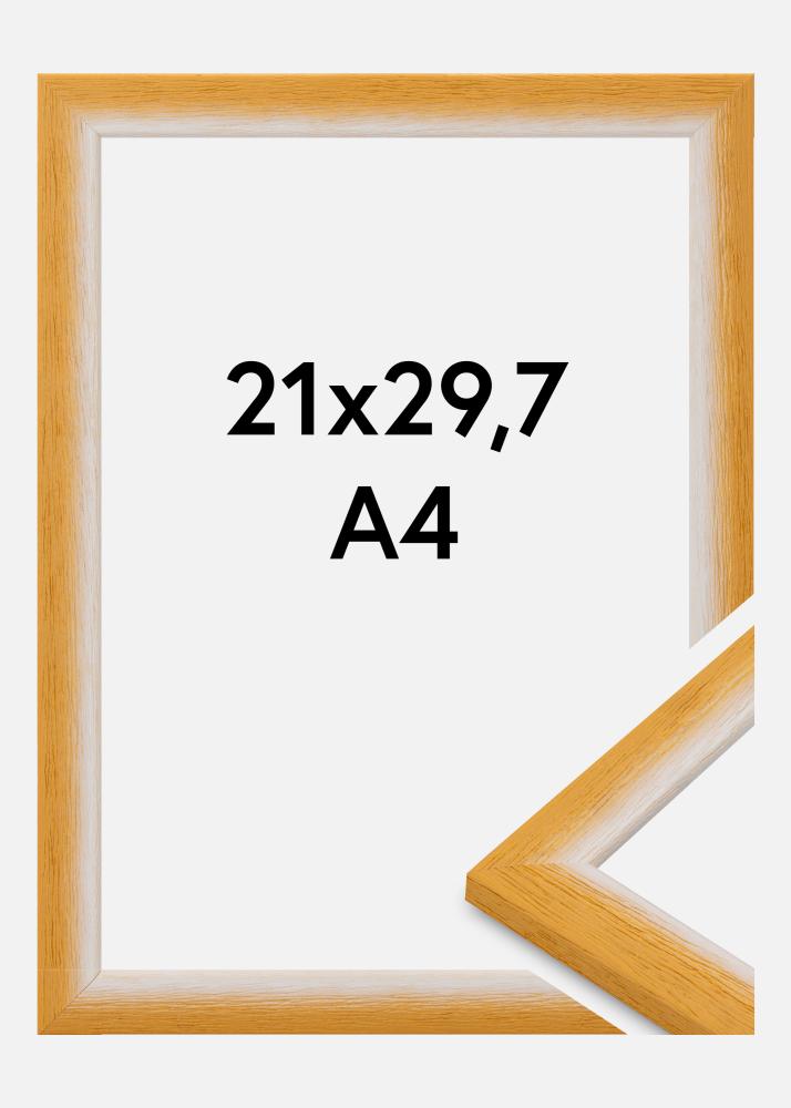Ta Rama o wymiarach 21x29,7 cm (A4) to doskonałe połączenie nowoczesnego designu i klasycznej elegancji. Ciepły, Żółty odcień oraz gładka powierzchnia subtelnie podkreślają naturalną strukturę drewna. Wąski profil, z listwą o szerokości 23 mm i głębokości 13 mm, nadaje całości prosty i minimalistyczny charakter, pozwalając Twojemu motywowi znaleźć się w centrum uwagi.