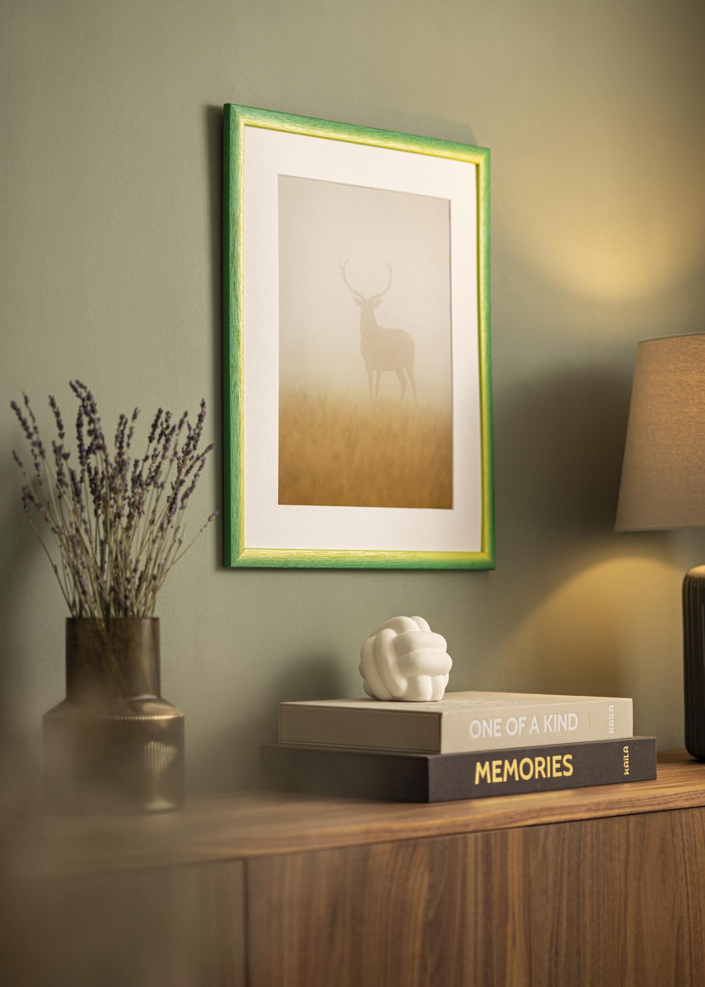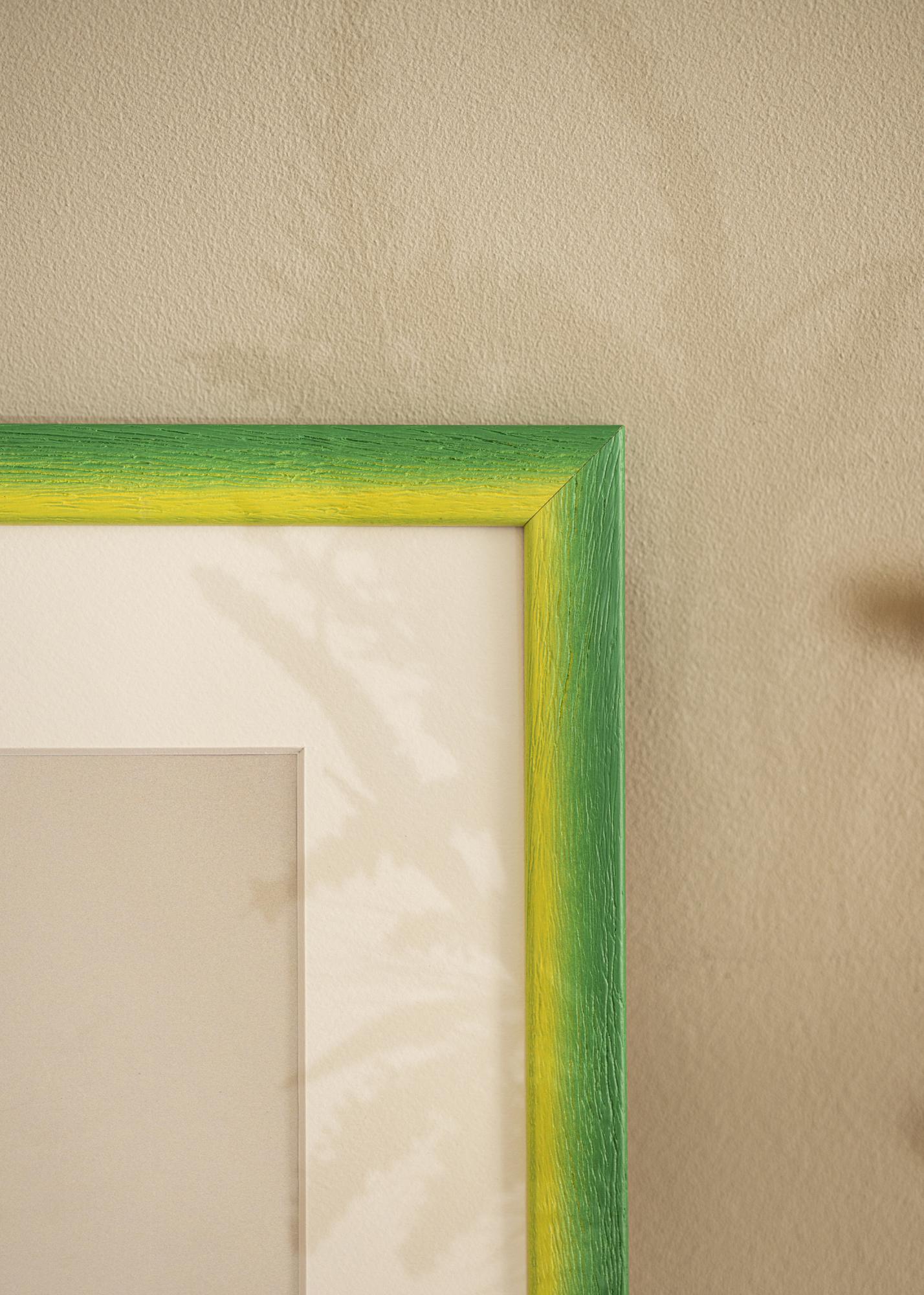 Odkryj naszą na zamówienie wykonana ramkę na zdjęcia Cornwall Zielony, unikalną ramkę na zdjęcia, którą produkujemy bezpośrednio w naszym własnym warsztacie. Dzięki swojej żywej gamie kolorów, w której słoneczne żółcie płynnie przechodzą w bujną zieleń, ta ramka staje się dziełem sztuki sama w sobie. Wyraźna struktura drewna z głębokimi słojami dodaje dotykowego wrażenia i ręcznie malowanego efektu, który podkreśla organiczny wyraz.
