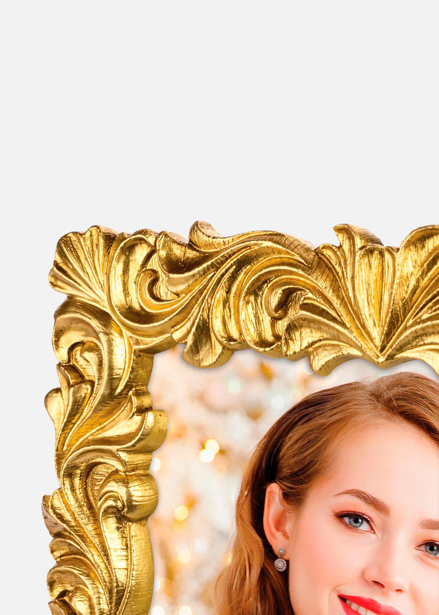 Złote wykończenie tej ramy do obrazów dodaje ciepłego i przyciągającego blasku każdemu pomieszczeniu. Bez względu na to, czy umieścisz ją na ścianie, czy na stole, ta rama przyciągnie spojrzenia i uzupełni twoje wnętrza swoją charakterystyczną urodą.