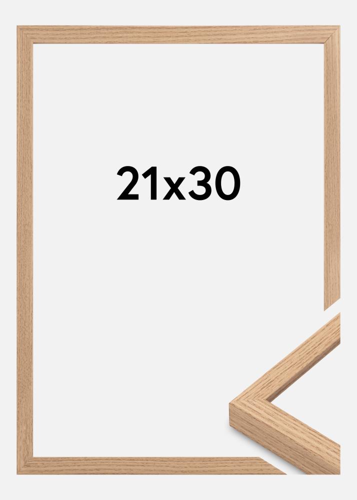 Ta ramka na zdjęcia w kolorze dębu to doskonałe połączenie stylu i funkcjonalności. Z rozmiarem 21x30 cm, idealnie nadaje się do eleganckiego wyeksponowania Twoich ulubionych motywów. Jasna imitacja dębu nadaje ciepłe i naturalne wrażenie, co sprawia, że ramka wpasowuje się w większość stylów wnętrz. Dyskretna struktura drewna i delikatne żyłki naśladują prawdziwy dąb, co tworzy żywe i harmonijne wrażenie.