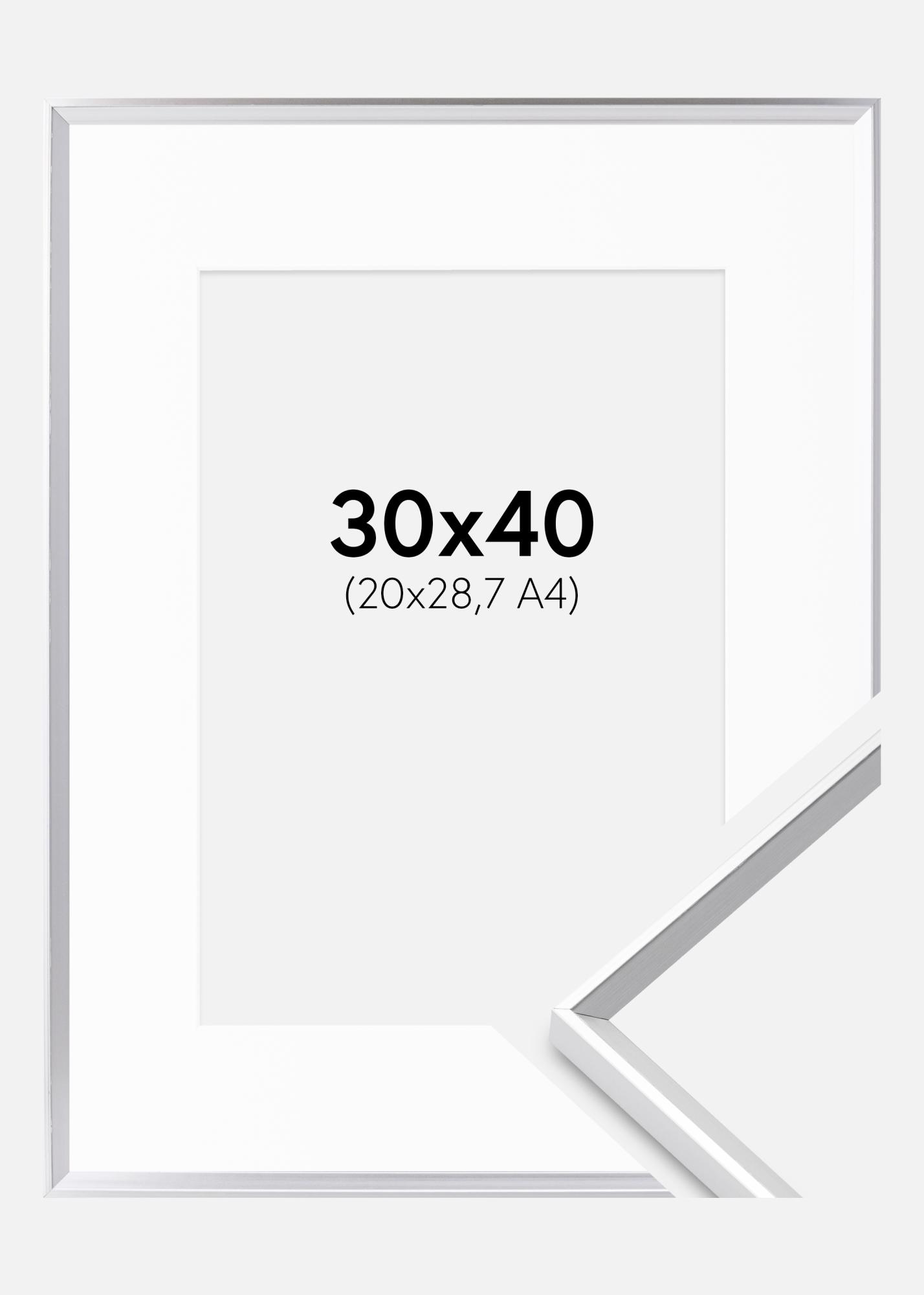Odkryj sztukę na nowo z naszą elegancką srebrną ramą z białą passepartout. Ta rama jest idealna do podkreślenia Twojego obrazu w formacie A4 (21x29,7 cm) z wyrafinowanym akcentem. Passepartout zapewnia wizualną pauzę między dziełem a ramą, co wzmacnia doświadczenie oglądającego i pomaga chronić Twoje dzieło przed dotykaniem szkła.