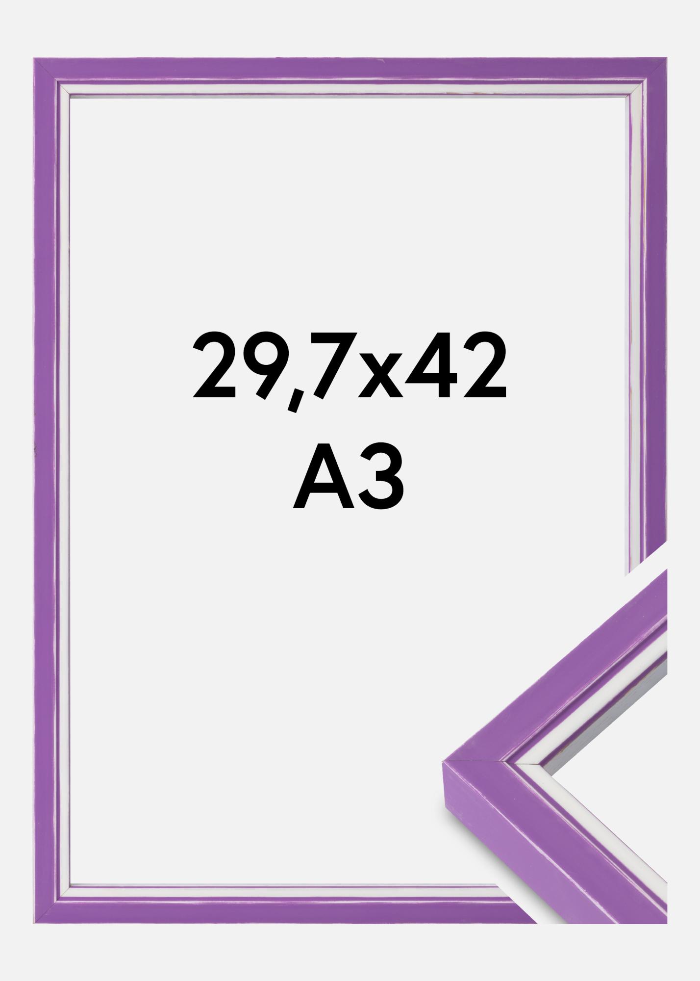 Dodaj swojemu wnętrzu kolorowy akcent dzięki tej przyciągającej wzrok ramie o wymiarach 29,7x42 cm (A3). Dzięki unikalnemu połączeniu fioletu i bieli, ta rama dodaje nowy wymiar twojemu dziełu sztuki lub fotografii. Jest nie tylko stylową oprawą, ale także praktycznym wyborem dzięki krystalicznemu i nietłukącemu się akrylowemu szkłu chroniącemu twoje zdjęcia.