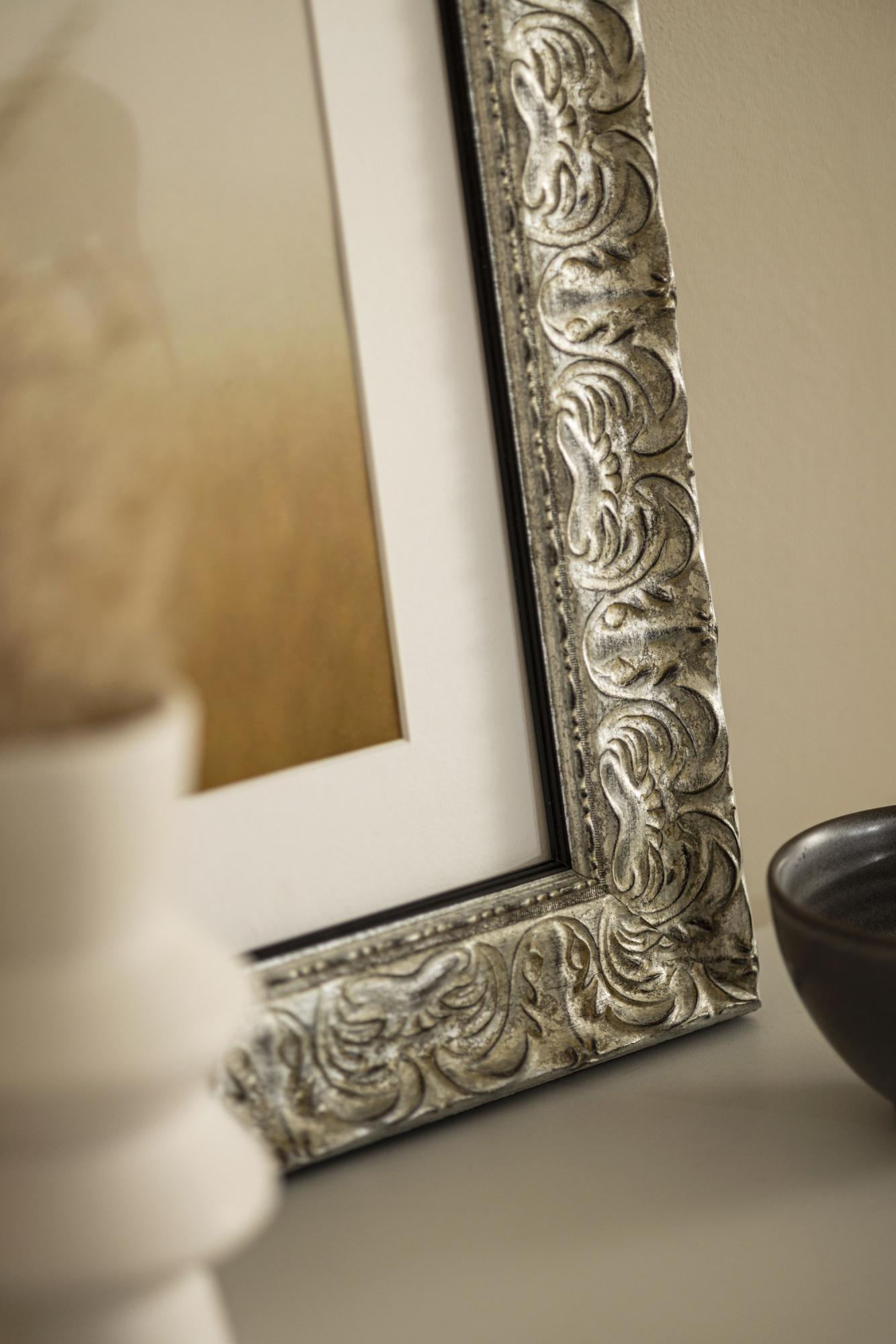 Rama Durham Silver to elegancka i stylowa ramka na zdjęcia, która nadaje Twoim obrazom wyrafinowane obramowanie. Dzięki srebrnej powierzchni i antycznemu wykończeniu tworzy rustykalne, a zarazem nowoczesne wrażenie w Twoim domu. Ozdobny relief na powierzchni ramy przyczynia się do jej unikalnego charakteru, co czyni ją idealnym wyborem do podkreślenia ulubionych fotografii lub dzieł sztuki.