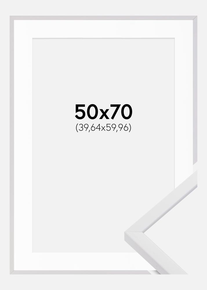 Rama ma szerokość 12 mm i głębokość 20 mm, co nadaje smukły i nowoczesny profil. Matowe wykończenie uzupełnia wszystkie style wnętrz, a biały kolor zarówno ramy, jak i passepartout zapewnia czystą i jednolitą prezentację. Rama jest wyposażona w metalowe haki z tyłu, co umożliwia łatwe zawieszenie w formacie poziomym i pionowym.