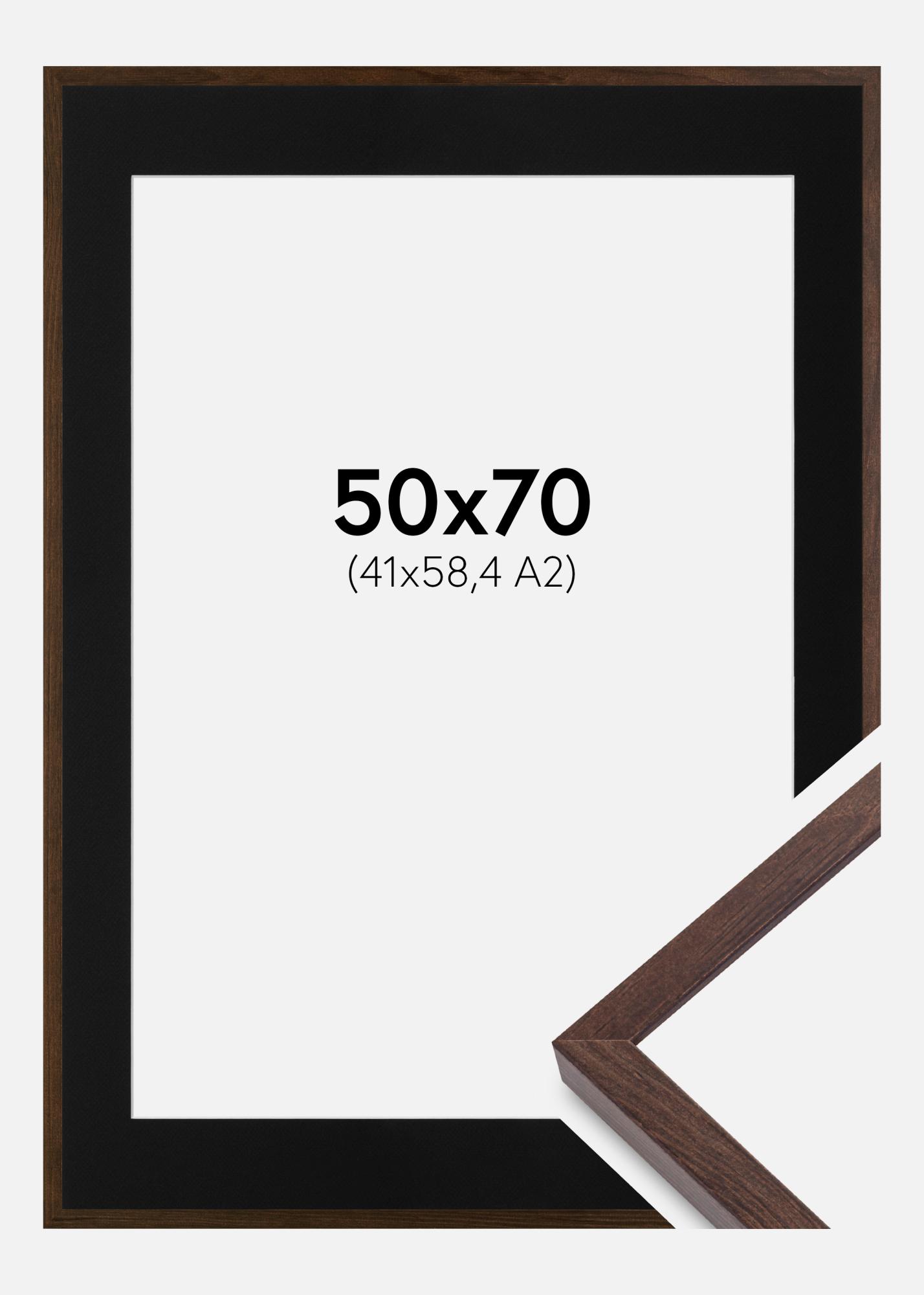 Rama E-Line Orzech 50x70 cm - Passe-patrout Czarny 42x59,4 cm (A2)