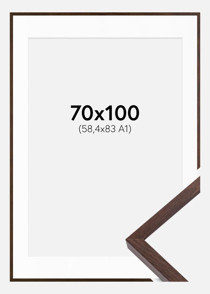 Rama E-Line Orzech 70x100 cm - Passe-patrout Biały 59,4x84 cm (A1)