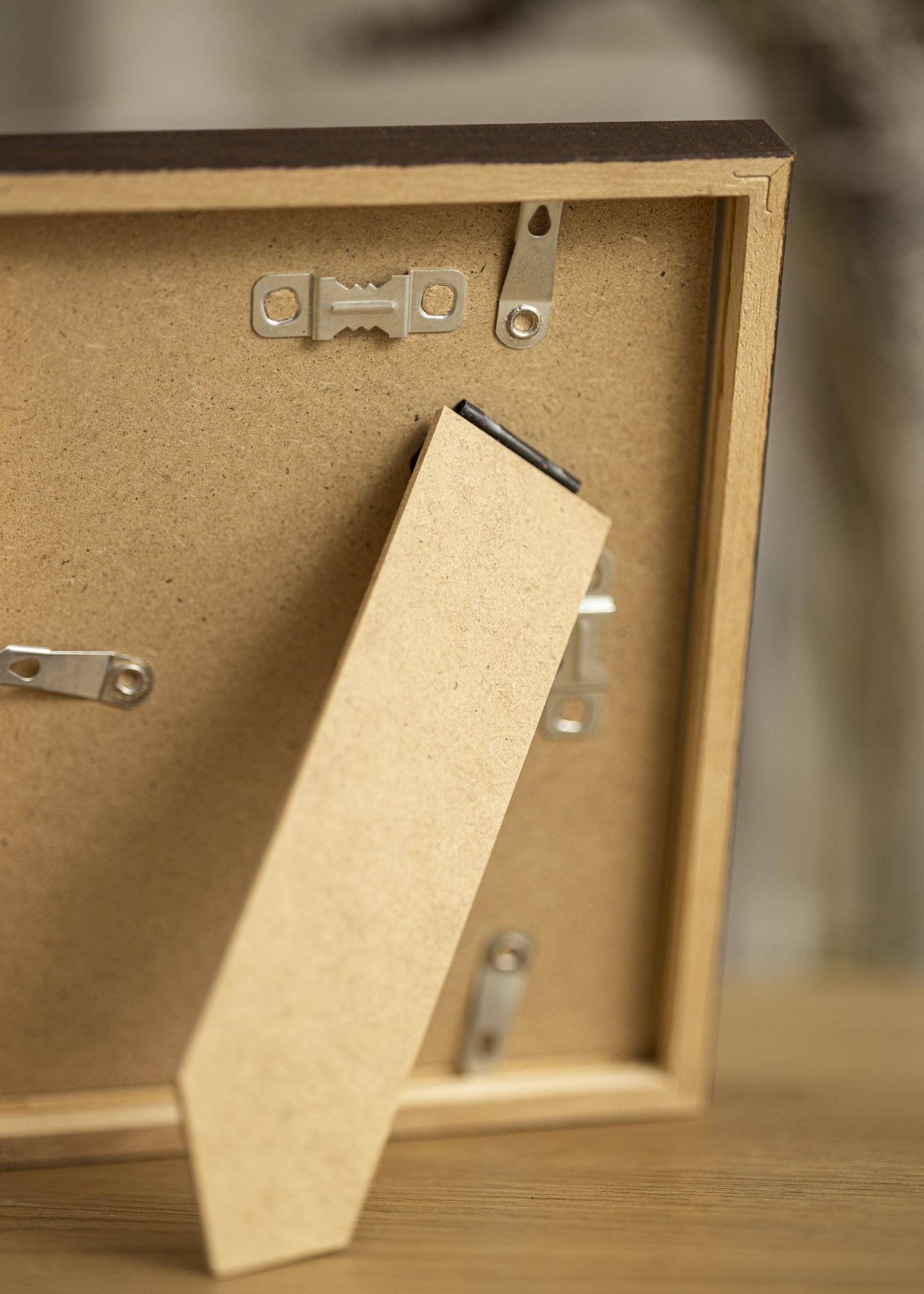 Ta ramka na obraz wykonana jest z solidnej sosny i ma matowe wykończenie, które uzupełnia orzechowy wzór. Jej głębokość 20 mm nadaje jej wyrazisty i stylowy profil, który wzbogaci każdą ścianę.
