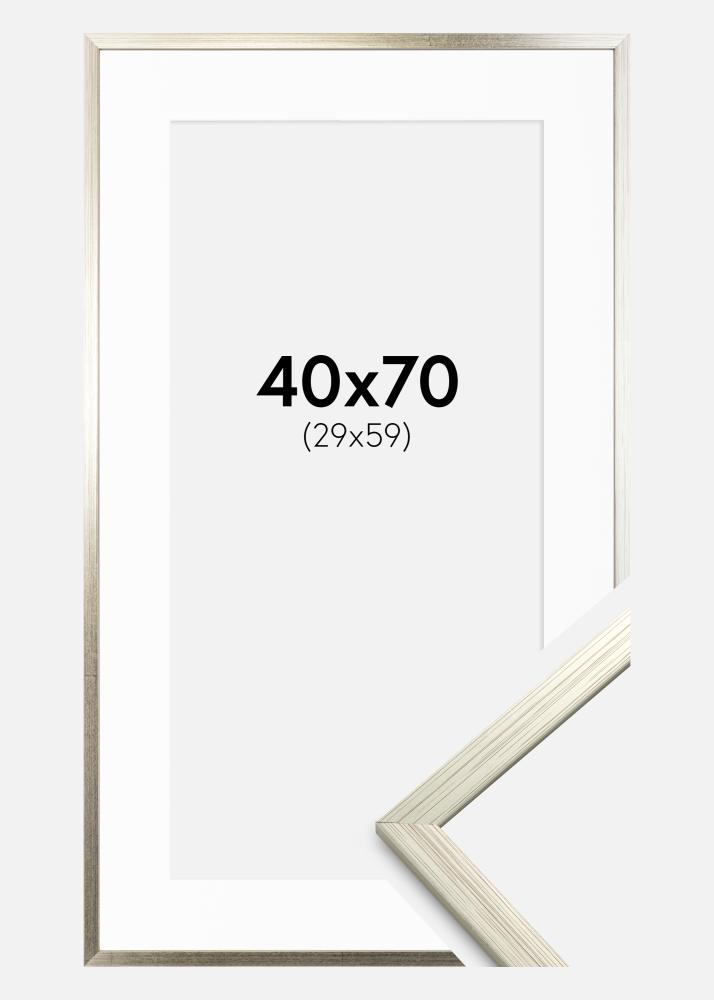 Przekształć swoje ulubione zdjęcie lub dzieło sztuki w elegancką dekorację ścienną z naszą wyrafinowaną srebrną ramką z białym passe-partout. Ta rama została zaprojektowana, aby podkreślić i chronić Twój obraz w rozmiarze 30x60 cm, jednocześnie dodając odrobinę stylu do Twojego wnętrza.