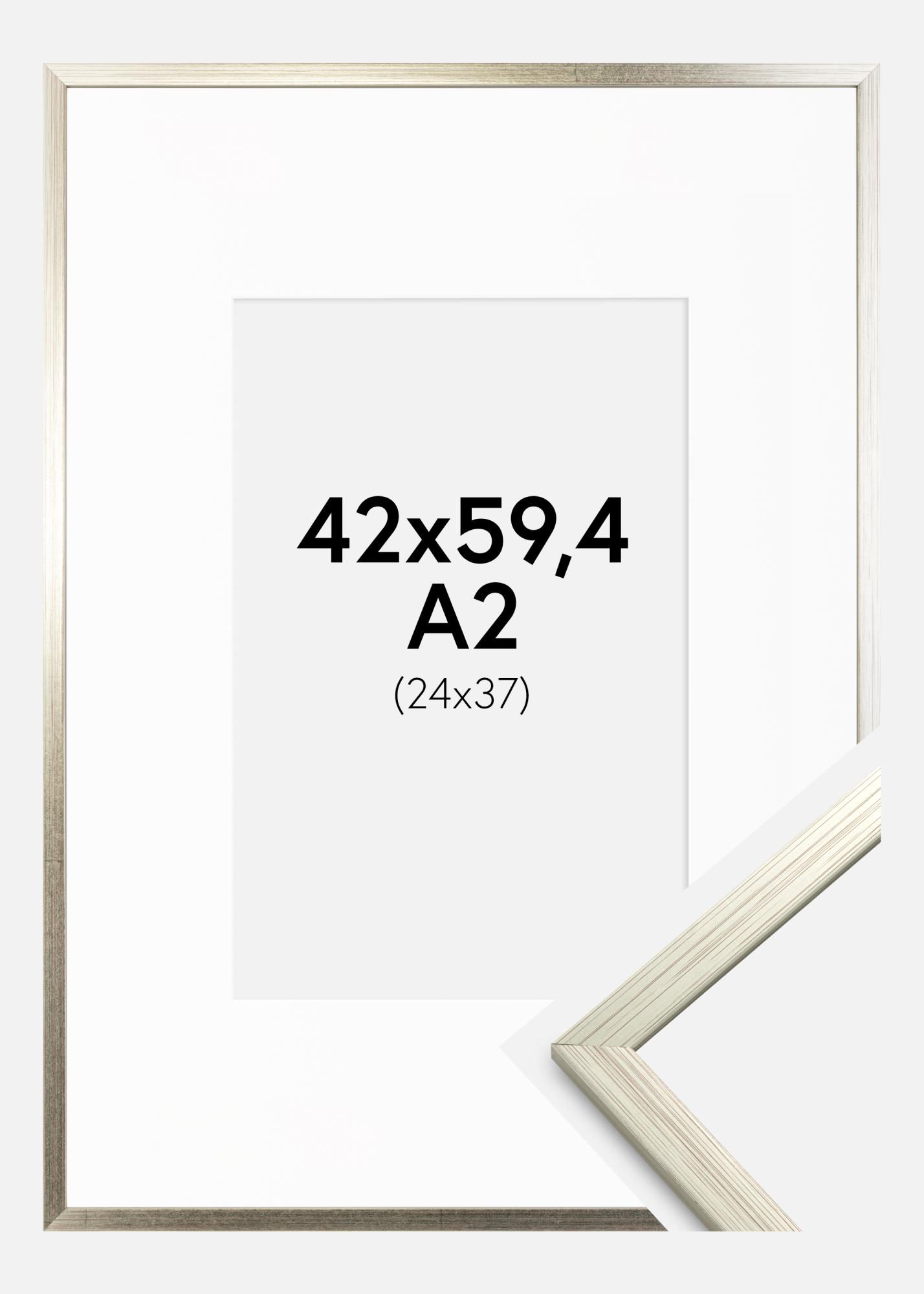 Rama wykonana jest z błyszczącym srebrnym wykończeniem, które nadaje jej nowoczesny i stylowy wygląd. Jej wąska szerokość wynosząca 13 mm dodaje subtelną oprawę bez odciągania uwagi od obrazu, podczas gdy głębokość 11,5 mm tworzy piękny trójwymiarowy efekt. Białe passepartout uzupełnia srebrny kolor ramy i działa jako wizualna przerwa, co pomaga wyeksponować obraz i chronić go przed dotykaniem szkła.