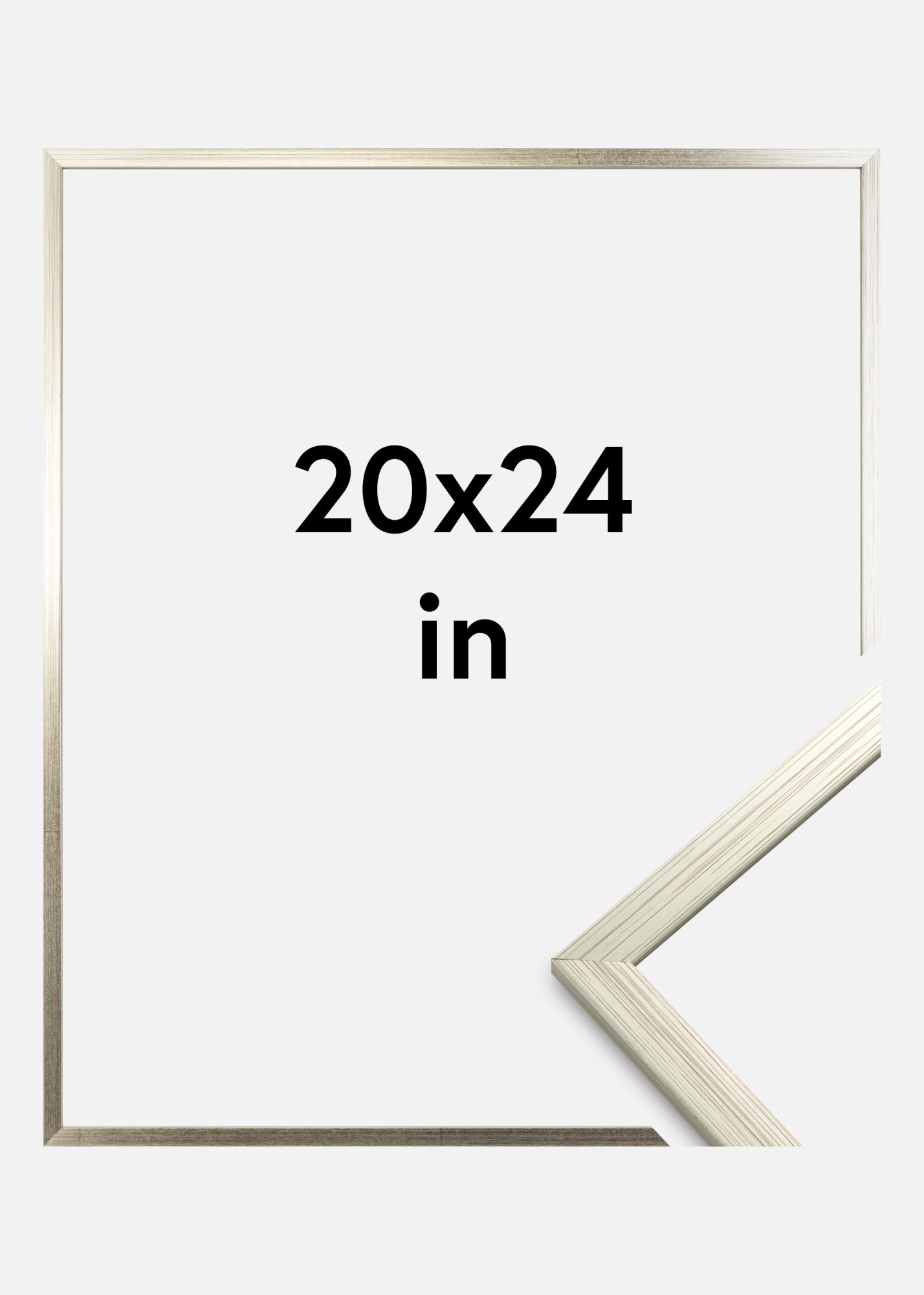 O rozmiarze 20 x 24 cale, ta srebrna ramka jest wyprodukowana w Szwecji i wyposażona w metalowe wieszaki z tyłu. Dzięki temu można łatwo zawiesić ramkę poziomo lub pionowo, w zależności od dostępnej przestrzeni i wizji projektowej.
