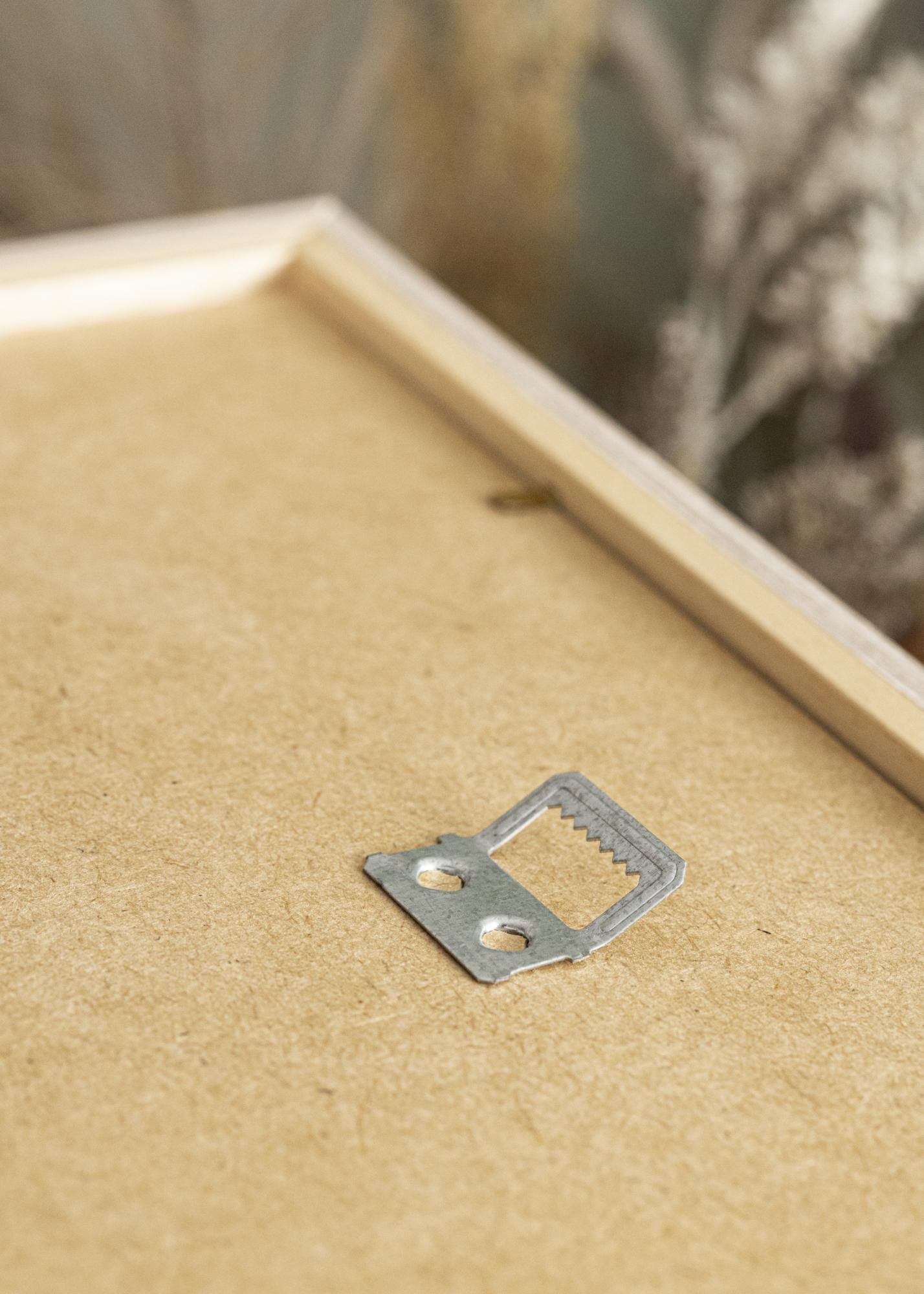Rama ma zewnętrzne wymiary 32x42 cm i jest wyposażona w metalowe wieszaki pozwalające na montaż zarówno w poziomie, jak i w pionie.
