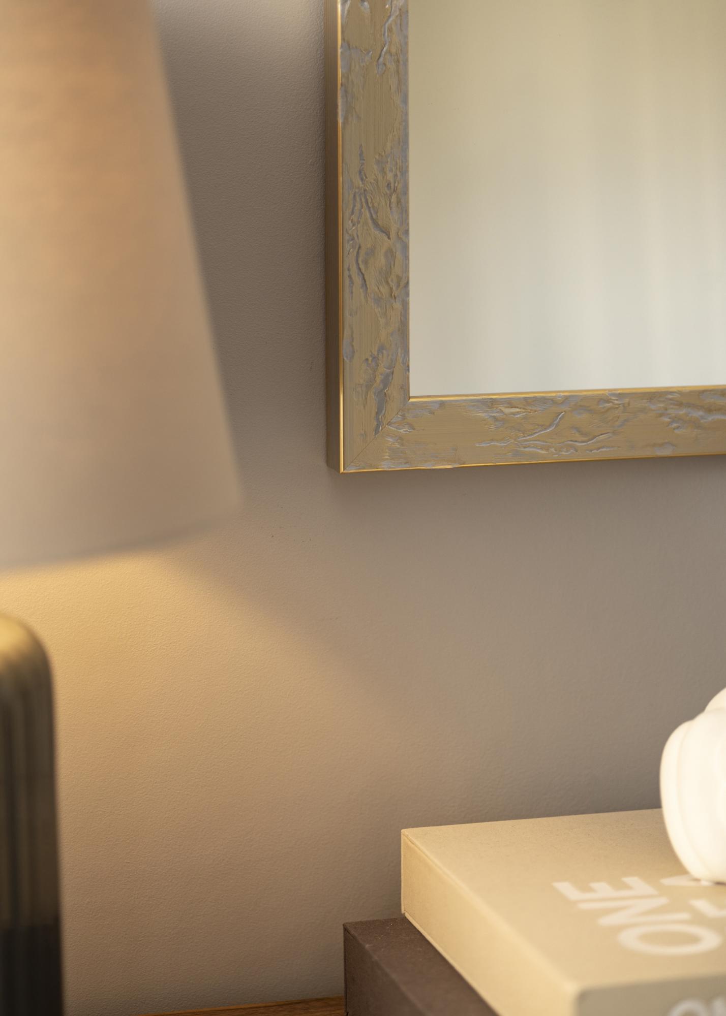Freja to piękna złota rama z nieregularną paskowaną powierzchnią z srebrnymi nierównościami. Dzięki połączeniu koloru srebrnego i złotego, Freja zyskuje przyjemny odcień, który jest bardziej srebrny niż złoty. Z głębokim profilem na 30 mm, Freja Złota wychodzi nieco od ściany, co daje wspaniały efekt 3D. Do ramy dołączone są szkło i tylna strona.