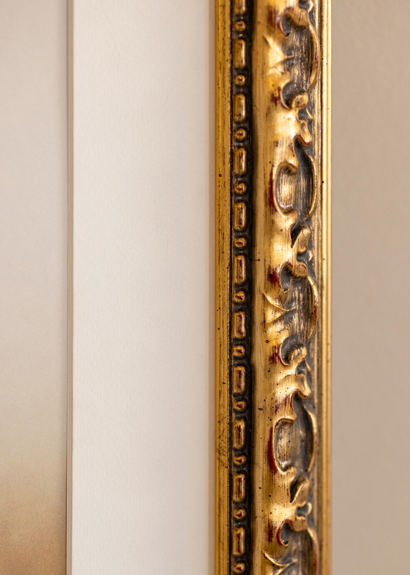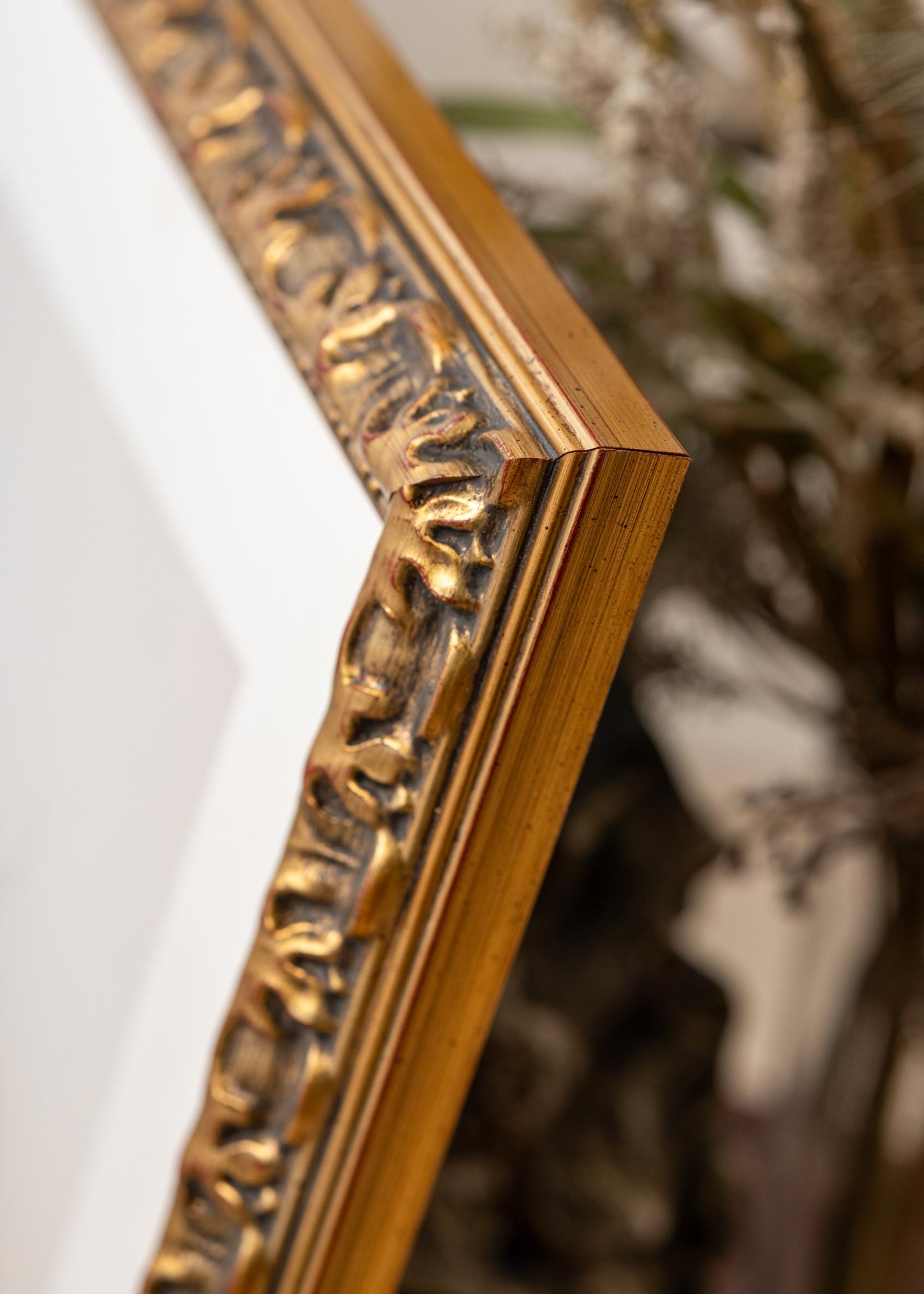 Rama Freyja Złota to elegancka i stylowa ramka na zdjęcia, która nadaje Twoim obrazom luksusową oprawę. Dzięki złotej powierzchni i skomplikowanym ornamentom staje się przyciągającym wzrok elementem w każdym pomieszczeniu. Antyczne wykończenie z ciemnymi patynowanymi detalami i subtelnymi czerwonymi akcentami wzmacnia rustykalny charakter ramy i nadaje jej ponadczasowy urok.
