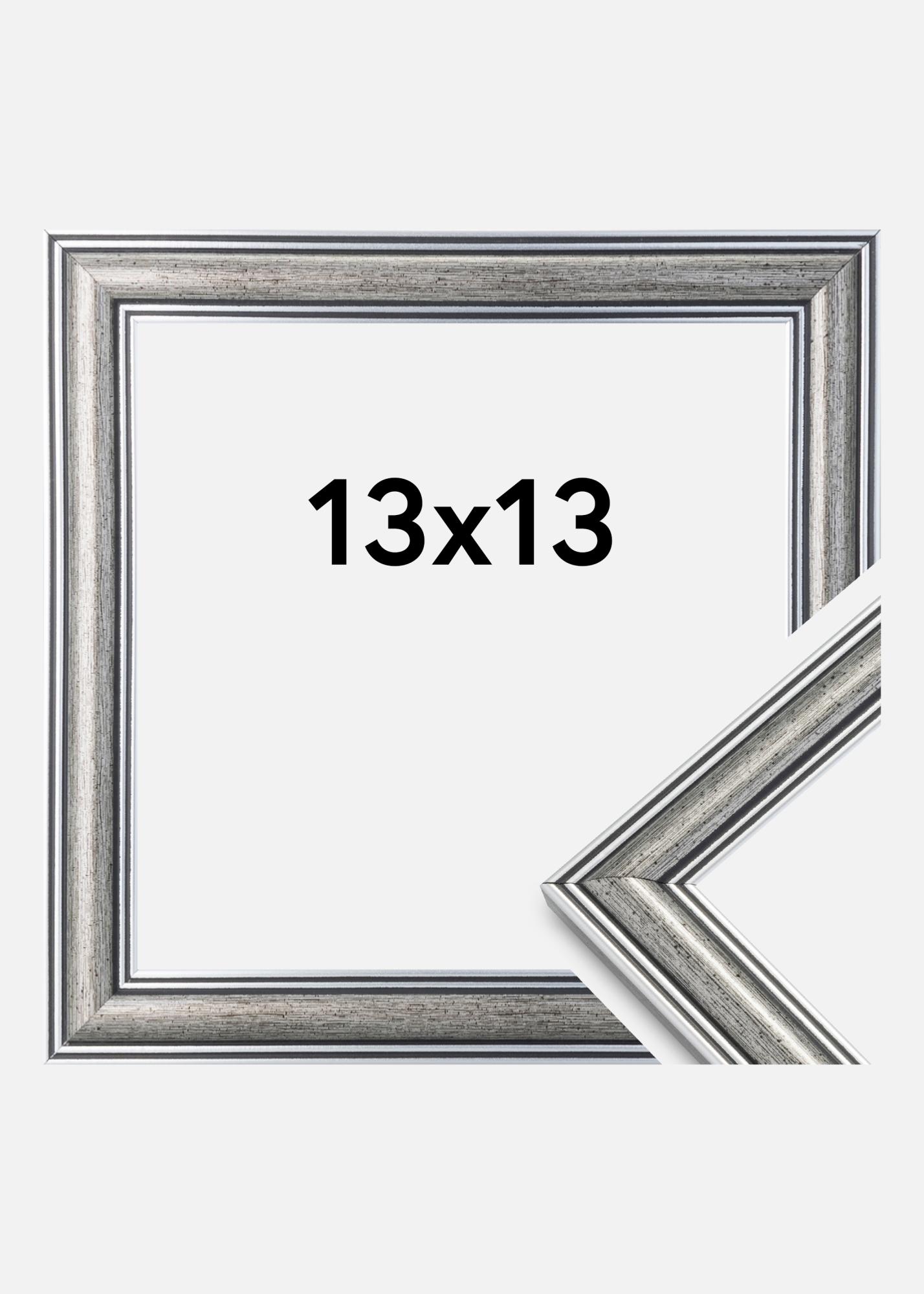 Frigg jest srebrną ramką z czarnymi liniami i czarno-plamistymi elementami. Doskonale nadaje się, gdy szukasz szerokiej tradycyjnej srebrnej ramki, która pasuje do wielu rodzajów zdjęć i środowisk.