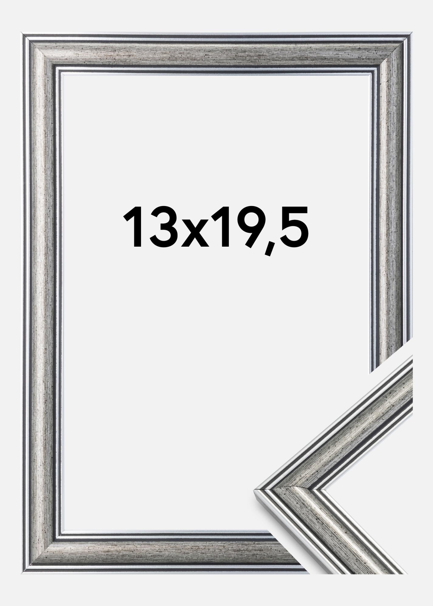 Frigg to srebrna ramka z czarnymi liniami i czarnymi kropkami. Doskonale pasuje, gdy szukasz szerokiej tradycyjnej srebrnej ramki, która pasuje do wielu typów obrazów i środowisk.
