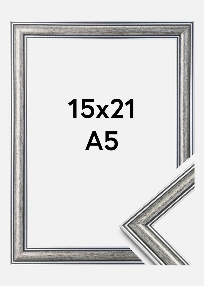 Frigg to srebrna ramka z czarnymi liniami i czarnymi plamkami. Doskonale pasuje, gdy szukasz szerokiej tradycyjnej srebrnej ramki, która pasuje do wielu rodzajów zdjęć i środowisk.