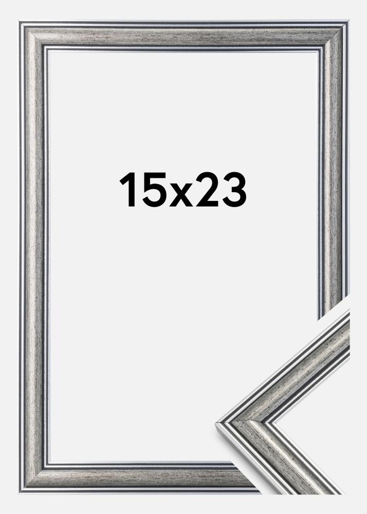 Frigg to srebrna ramka z czarnymi liniami i czarnymi plamkami. Doskonała, gdy szukasz szerokiej, tradycyjnej srebrnej ramki, która pasuje do wielu rodzajów obrazów i środowisk.