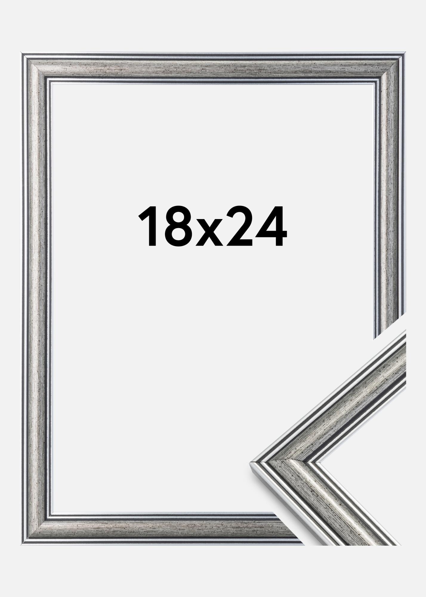 Frigg to srebrna ramka z czarnymi liniami i czarnymi plamami. Doskonale nadaje się, gdy szukasz szerokiej tradycyjnej srebrnej ramki, która pasuje do wielu rodzajów obrazów i środowisk.