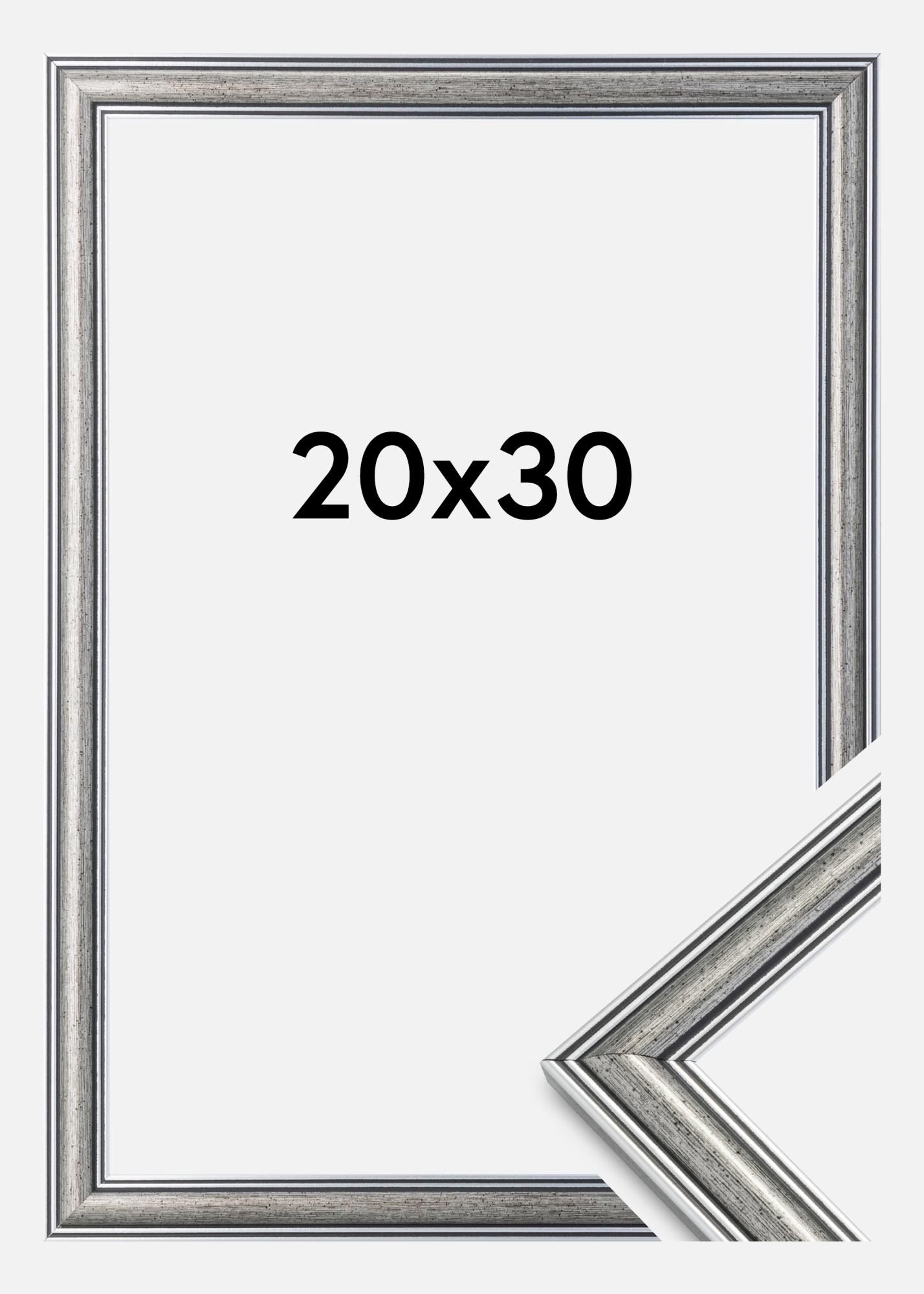 Frigg to srebrna ramka z czarnymi liniami i czarnymi plamkami. Doskonale nadaje się, gdy szukasz szerokiej tradycyjnej srebrnej ramki, która pasuje do wielu rodzajów obrazów i środowisk.