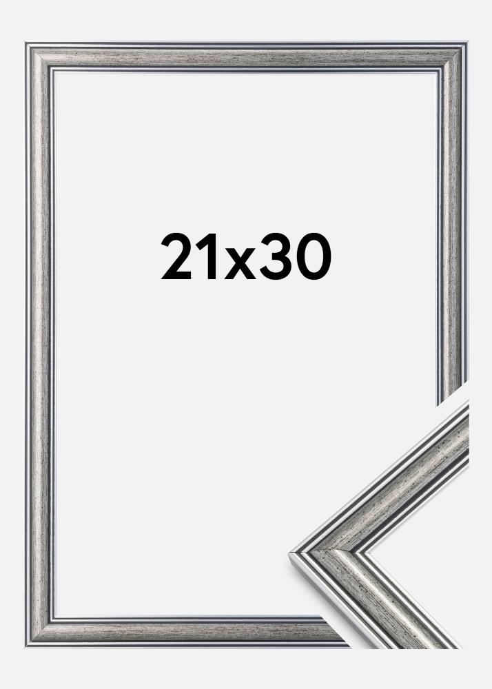 Frigg jest srebrną ramką z czarnymi liniami i czarnymi nakrapianymi elementami. Doskonale pasuje, gdy szukasz szerokiej tradycyjnej srebrnej ramki, która pasuje do wielu rodzajów zdjęć i środowisk.