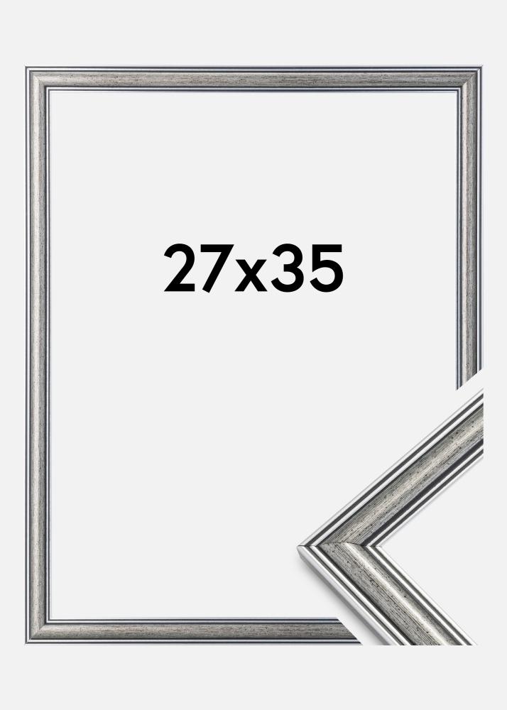 Frigg to srebrna ramka z czarnymi liniami i czarnymi plamkami. Idealnie nadaje się, gdy szukasz szerokiej, tradycyjnej srebrnej ramki, która pasuje do wielu rodzajów zdjęć i wnętrz.