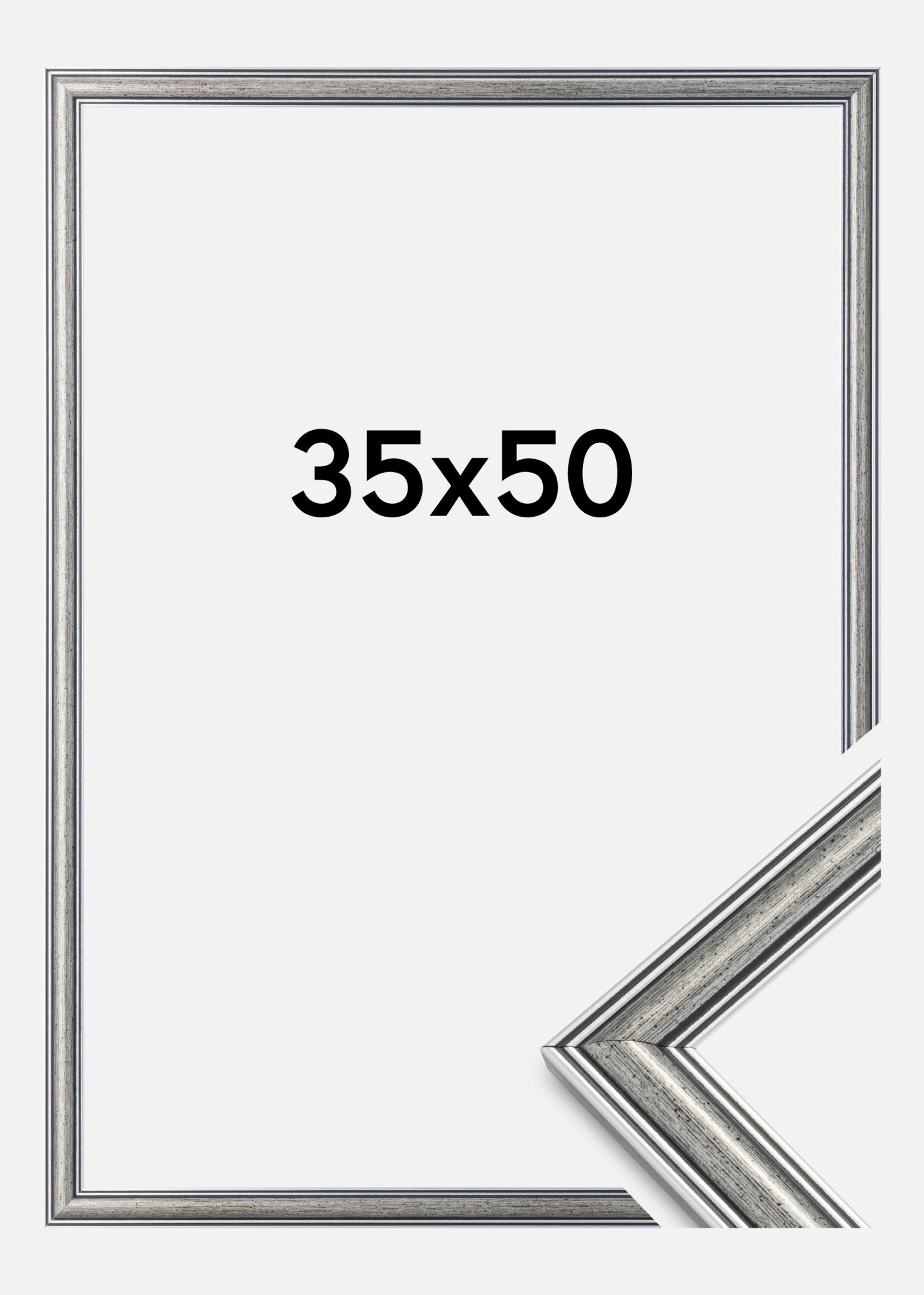Frigg to srebrna ramka z czarnymi liniami i czarnymi nakrapianymi elementami. Doskonale pasuje, gdy szukasz szerokiej, tradycyjnej srebrnej ramki odpowiedniej do wielu rodzajów obrazów i środowisk.