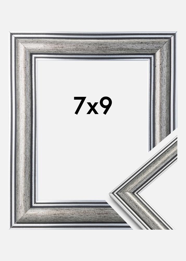 Frigg to srebrna ramka z czarnymi liniami i czarno-nakrapianymi elementami. Doskonale pasuje, gdy szukasz szerokiej, tradycyjnej srebrnej ramki odpowiedniej do wielu typów obrazów i otoczeń.