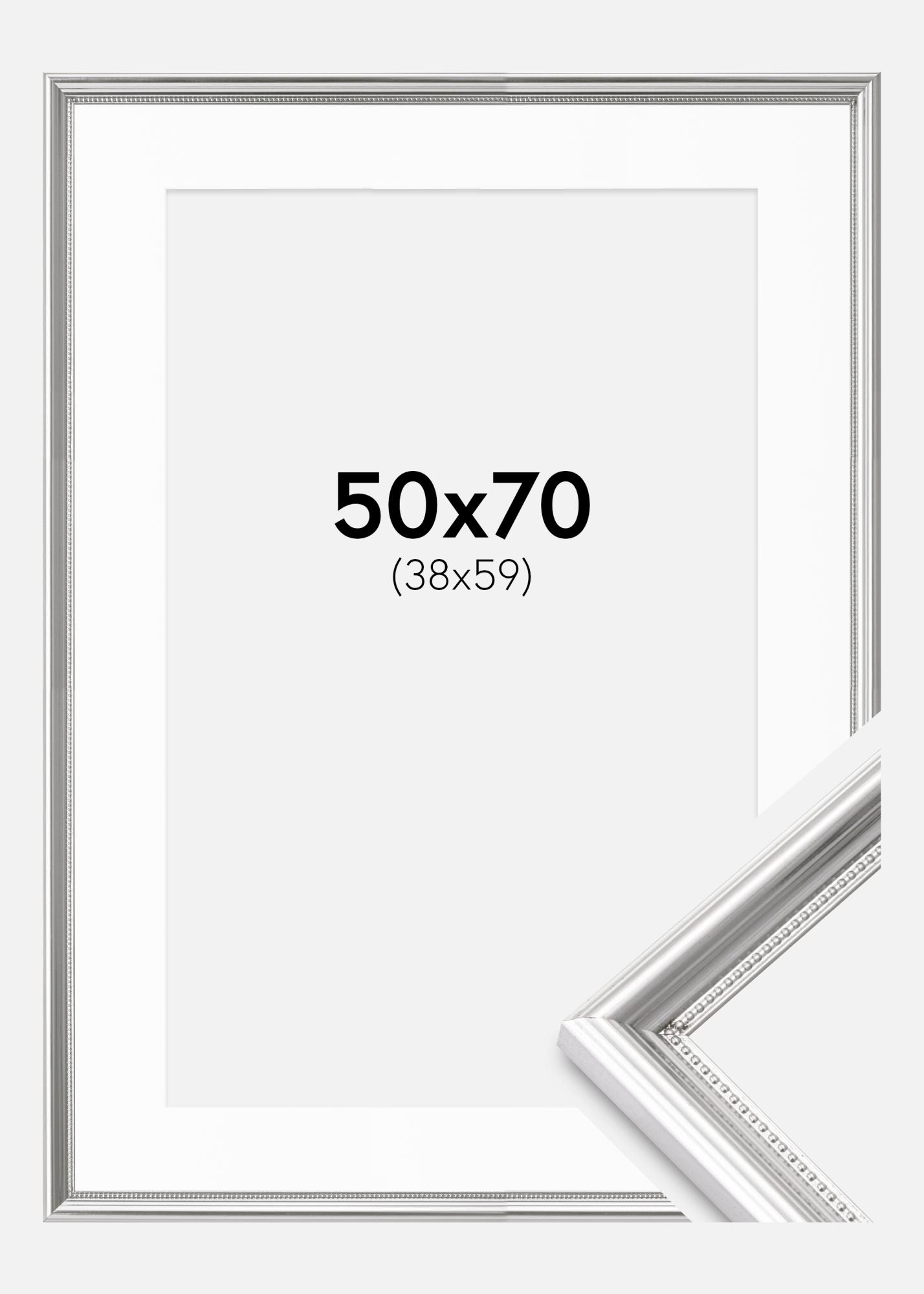 Ramka Gala Srebrny 50x70 cm - Passe-partout Biały 39x60 cm