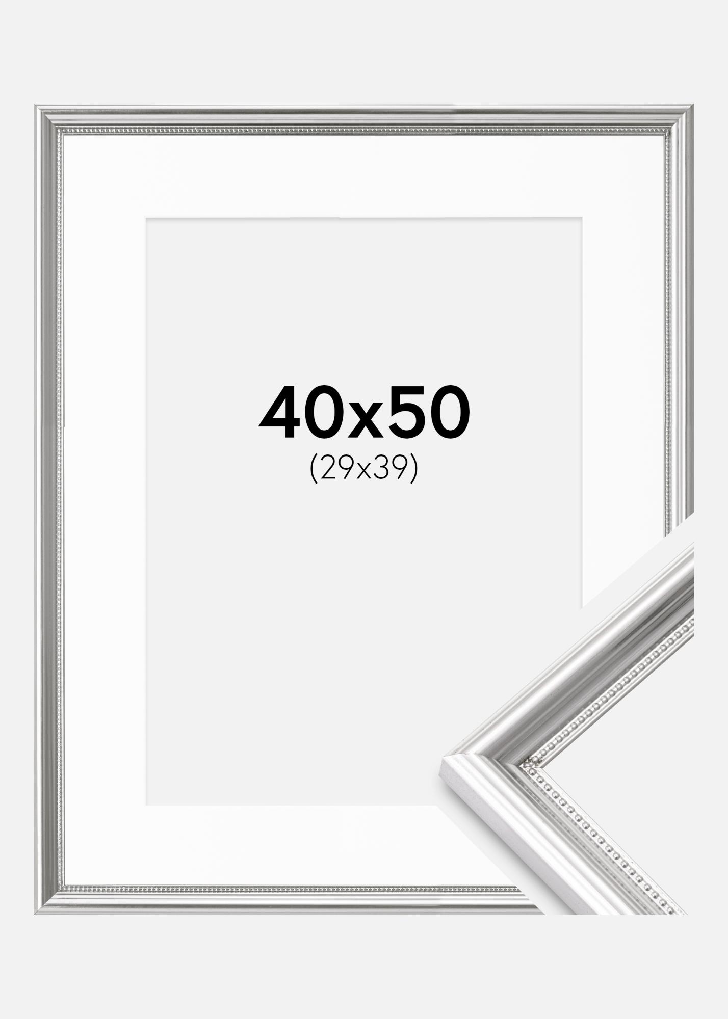 Rama Gala Srebrny 40x50 cm - Passe-patrout Biały 30x40 cm