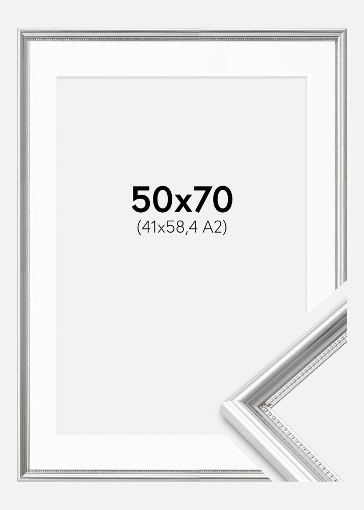 Rama Gala Srebrny 50x70 cm - Passe-patrout Biały 42x59,4 cm (A2)