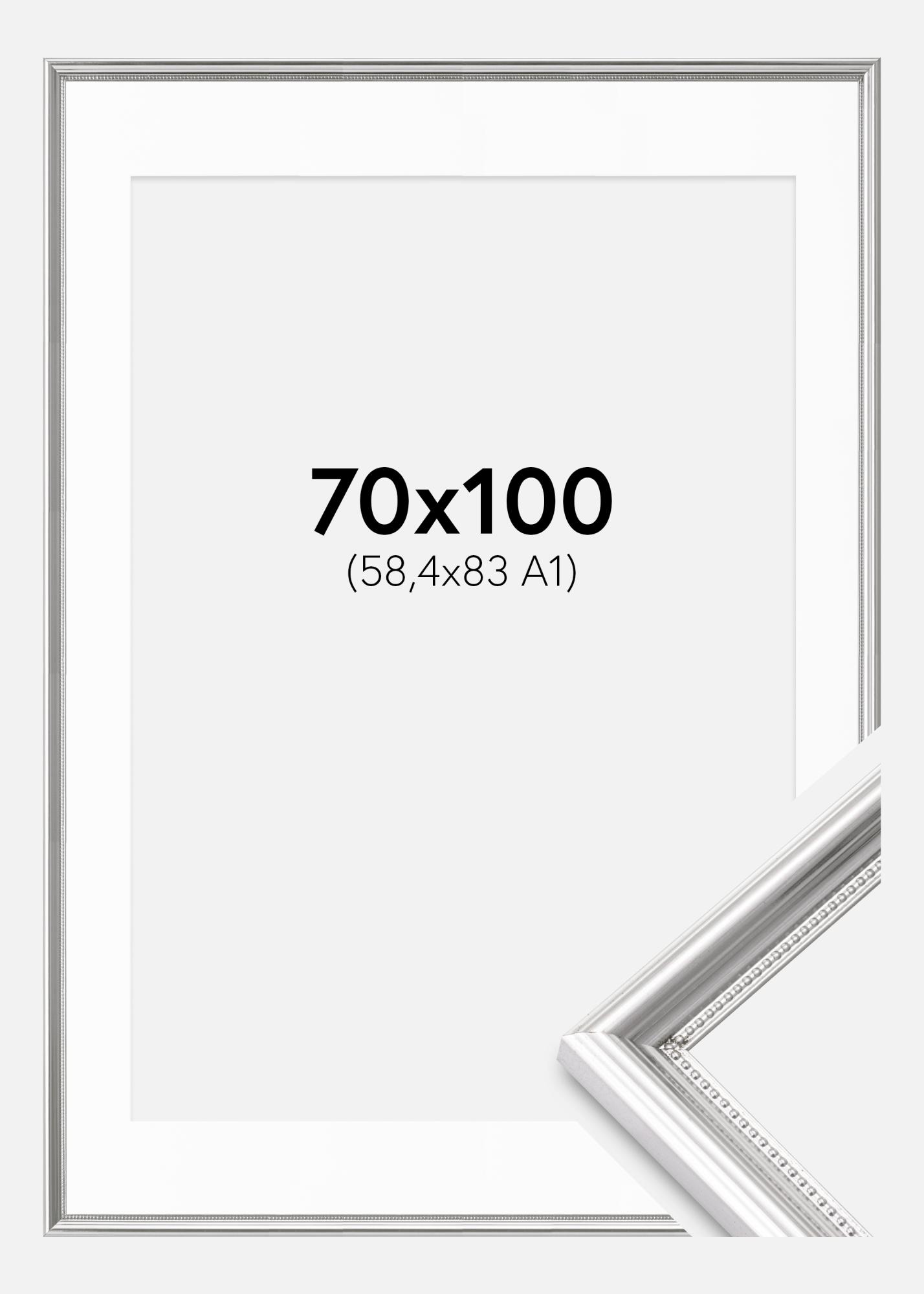 Rama Gala Srebrny 70x100 cm - Passe-patrout Biały 59,4x84 cm (A1)