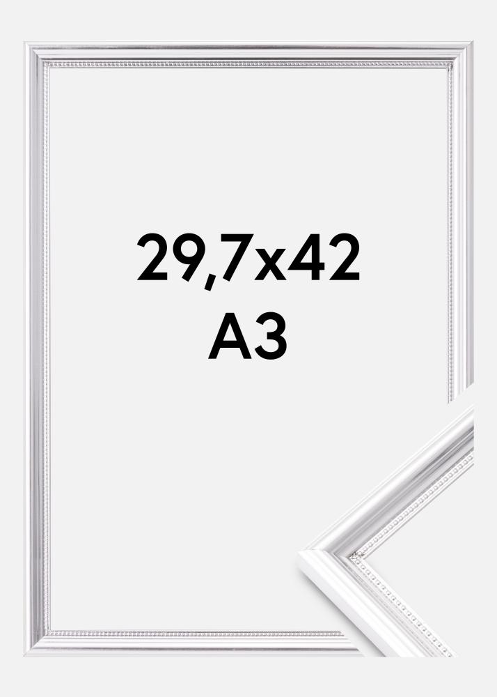 Dodaj elegancji swoim ścianom dzięki tej srebrnej ramie na zdjęcia o wymiarach 29,7x42 cm (A3). Profilowana rama w stylu retro nadaje klasyczny urok Twojemu domowi, jednocześnie błyszcząca powierzchnia odbija światło i dodaje blasku Twoim ulubionym fotografiom lub dziełom sztuki.