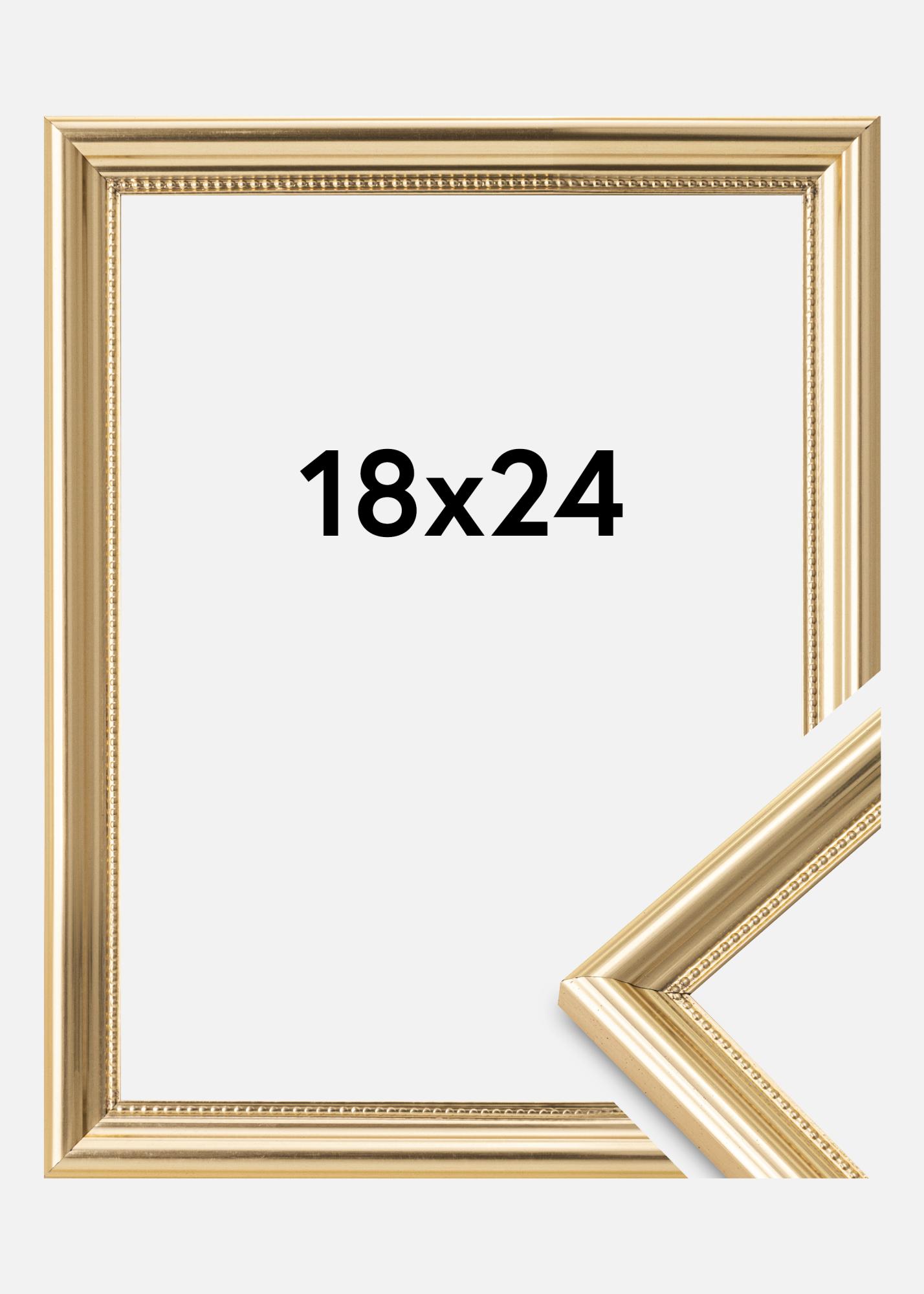 Dodaj swoim ścianom nutę elegancji dzięki tej ramce o wymiarach 18x24 cm w złotym kolorze. Jej złocista, profilowana listwa o szerokości 20 mm łączy klasyczny urok z nowoczesnym blaskiem. Błyszcząca powierzchnia ramki pięknie odbija światło, dodając luksusowego akcentu do wybranego dzieła sztuki lub fotografii.
