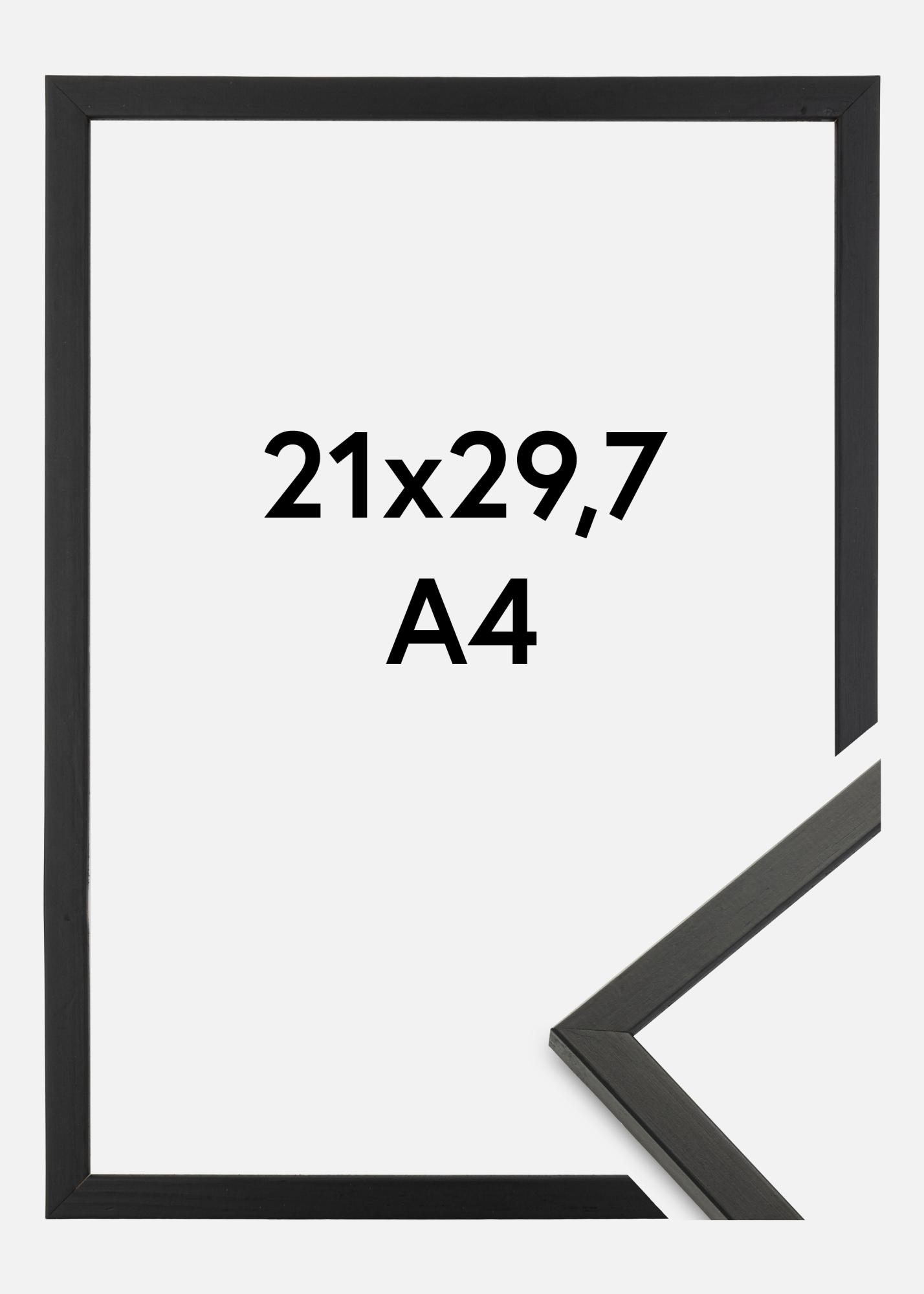 Klasyczna czarna ramka na obrazy z ciemnego czarnego drewna, która pasuje do motywów o wymiarach 21x29,7 cm (A4). Czarne ramki to klasyk, który pasuje do wszystkich rodzajów motywów i można go łatwo łączyć z innymi kolorami. Ramka ma prawdziwe szkło, co jest czymś, co cenimy w BGA, ponieważ zapewnia ostre obrazy.