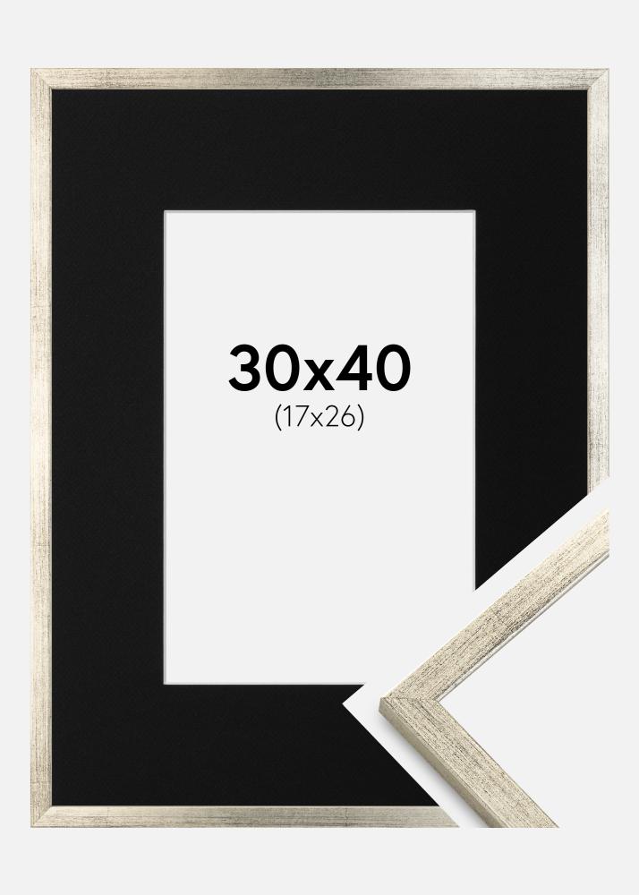 Rama Galant Srebrny 30x40 cm - Passe-patrout Czarny 18x27 cm