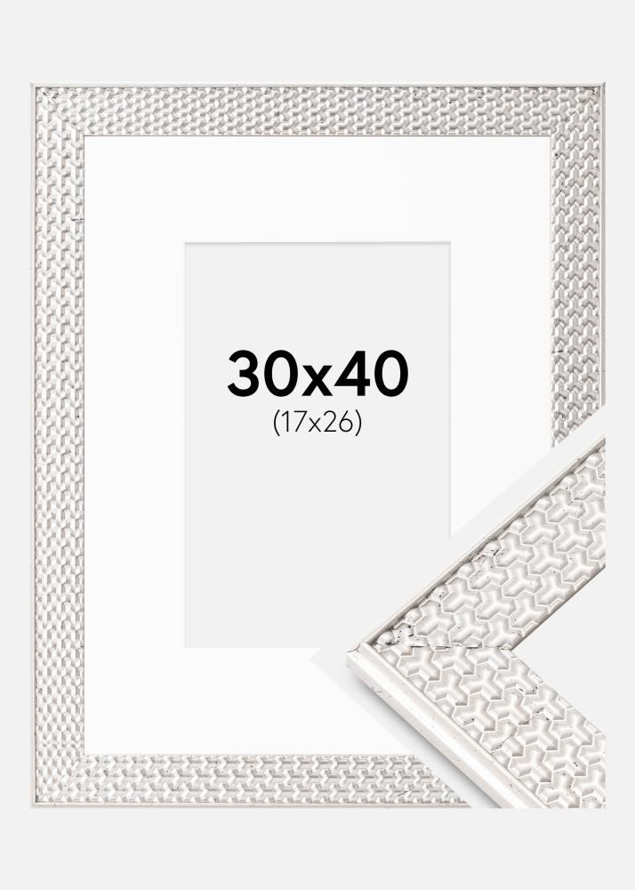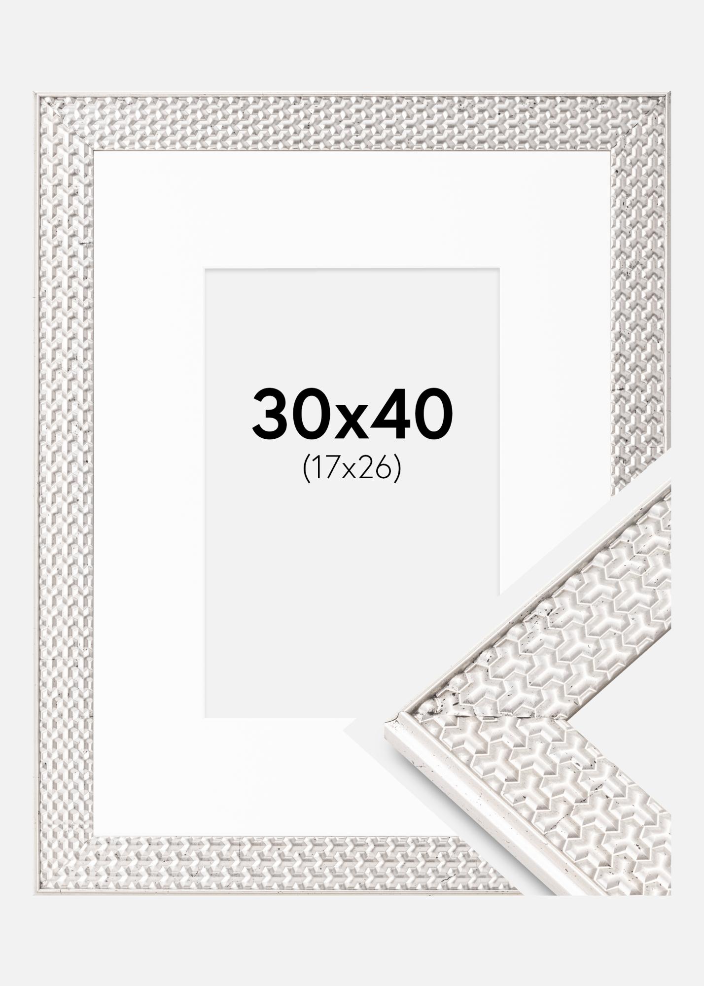 Rama Grace Srebrny 30x40 cm - Passe-patrout Biały 18x27 cm