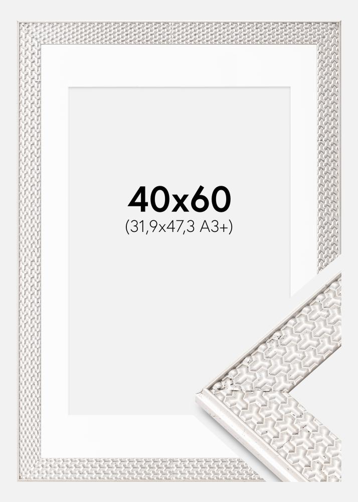 Rama Grace Srebrny 40x60 cm - Passe-patrout Biały 32,9x48,3 cm (A3+)