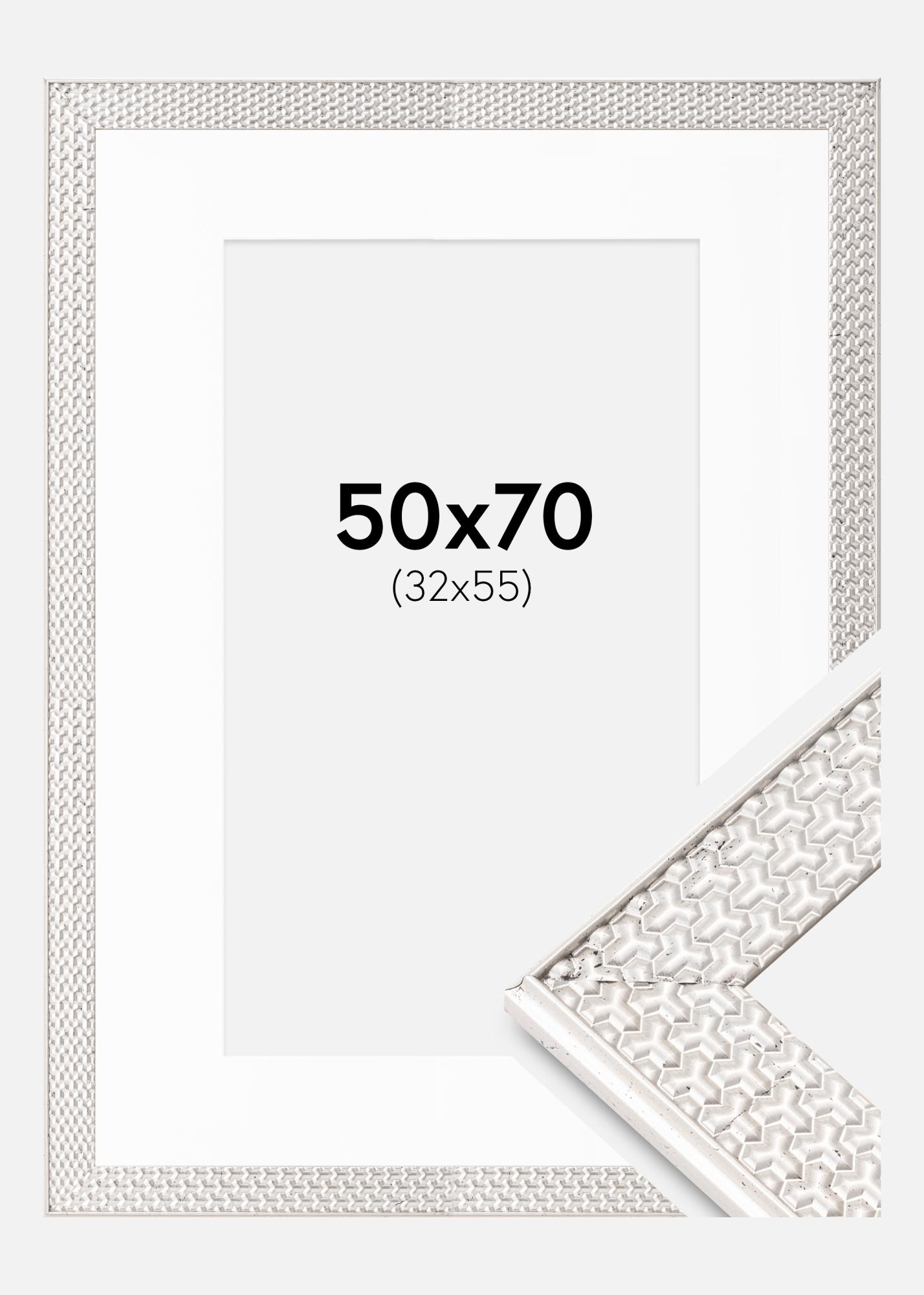 Rama Grace Srebrny 50x70 cm - Passe-patrout Biały 33x56 cm