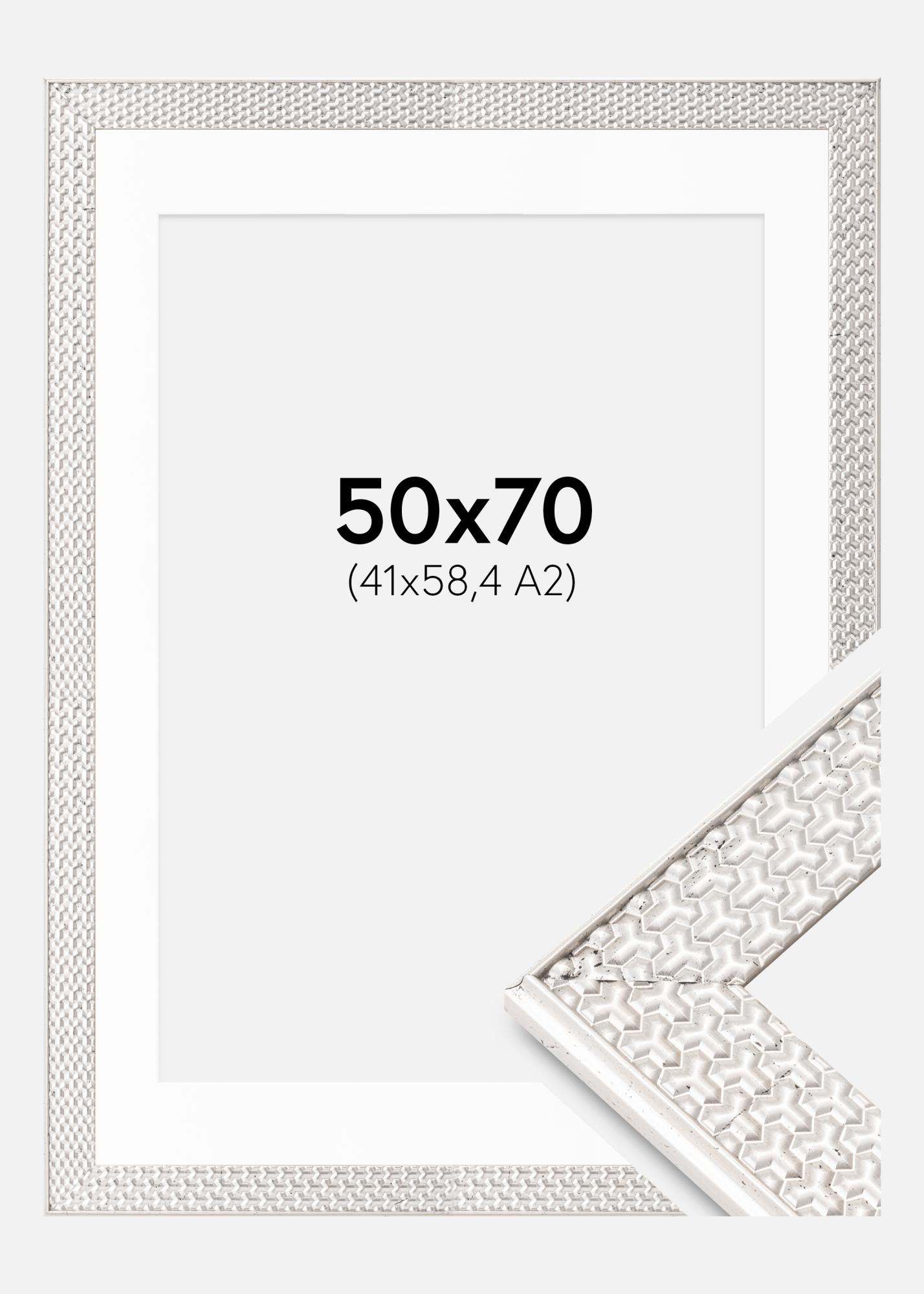 Rama Grace Srebrny 50x70 cm - Passe-patrout Biały 42x59,4 cm (A2)