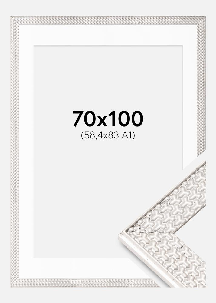 Rama Grace Srebrny 70x100 cm - Passe-patrout Biały 59,4x84 cm (A1)