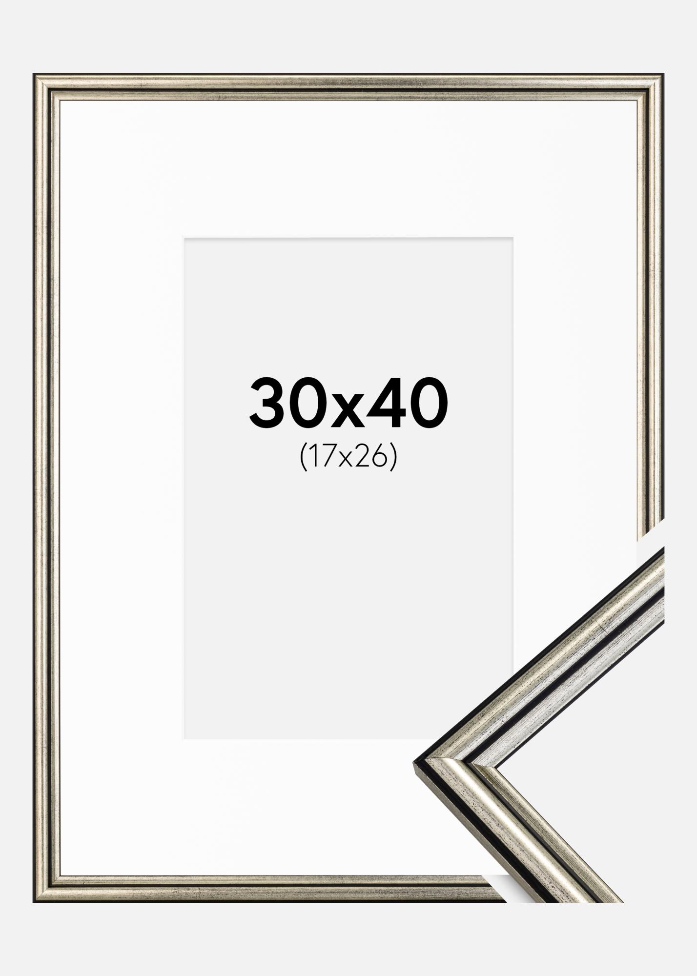 Rama Horndal Srebrny 30x40 cm - Passe-patrout Biały 18x27 cm