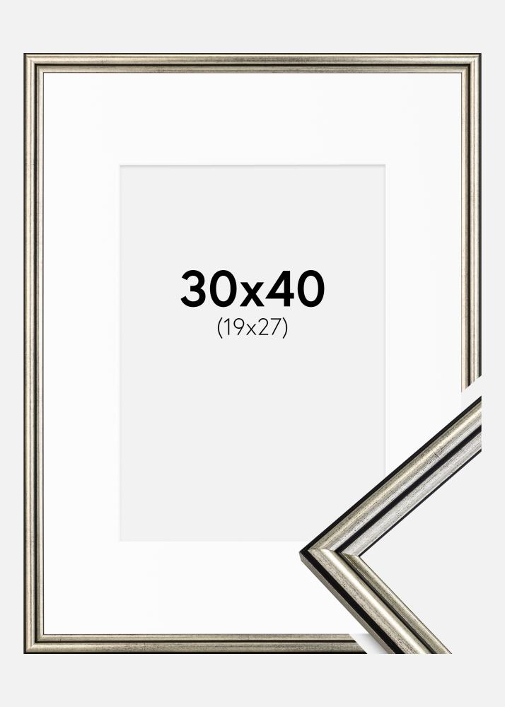 Rama Horndal Srebrny 30x40 cm - Passe-patrout Biały 20x28 cm