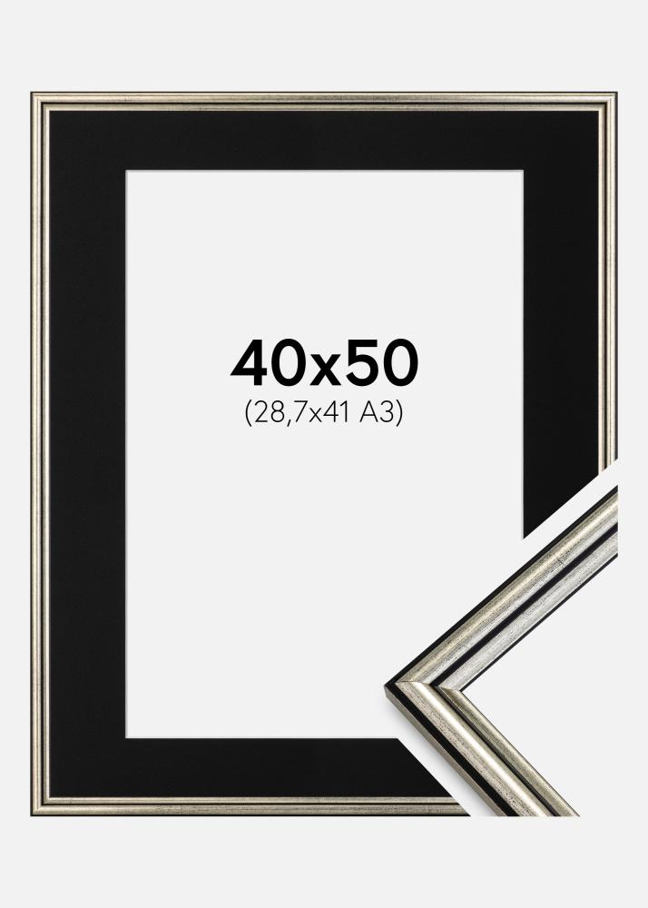 Rama Horndal Srebrny 40x50 cm - Passe-patrout Czarny 29,7x42 cm (A3)